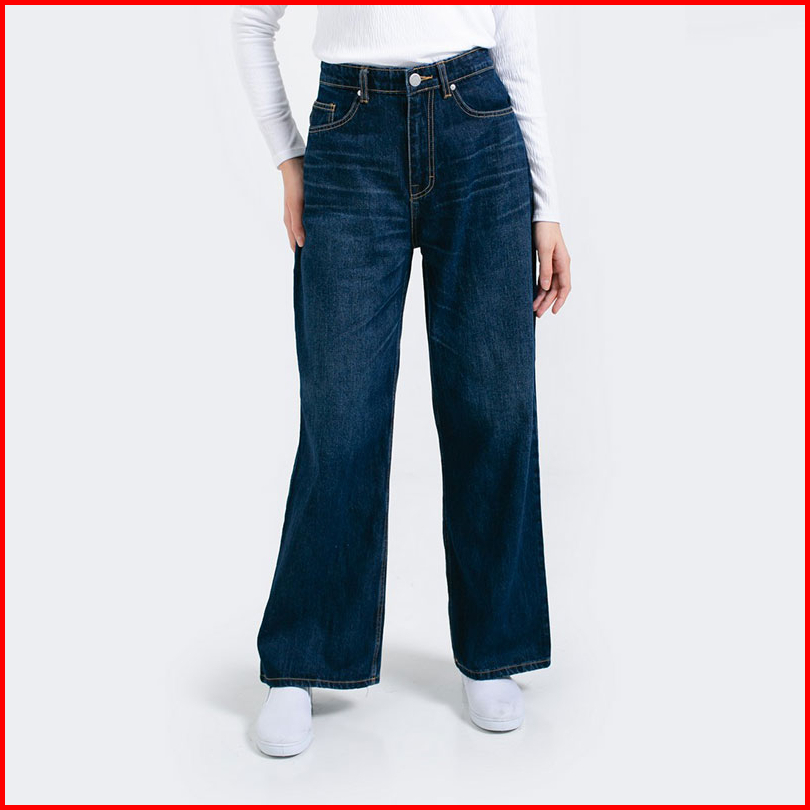 Greenlight Original Celana Wide Leg Jeans 100 Cotton Katun Rigid Long Pants Denim Non Stretch Wanita Medium Blue 161222