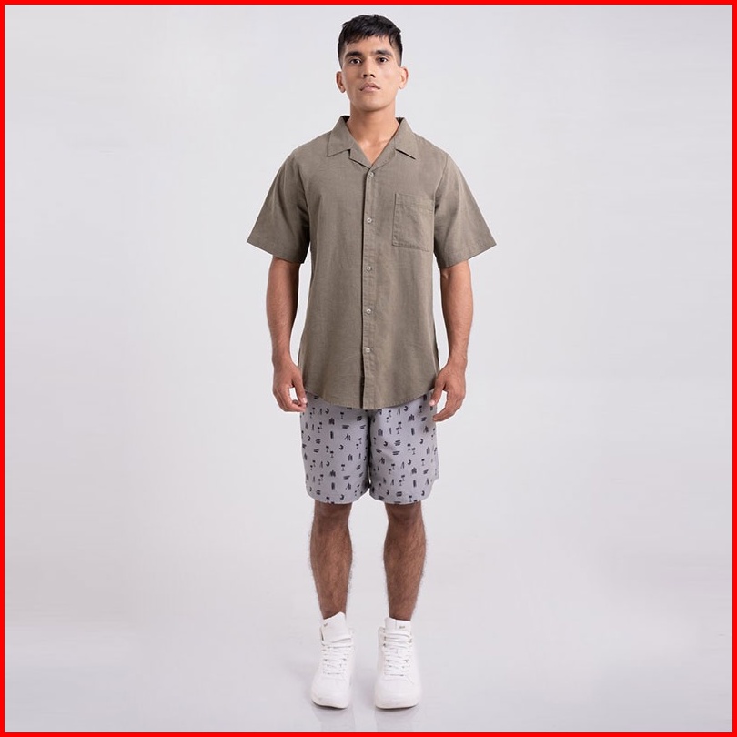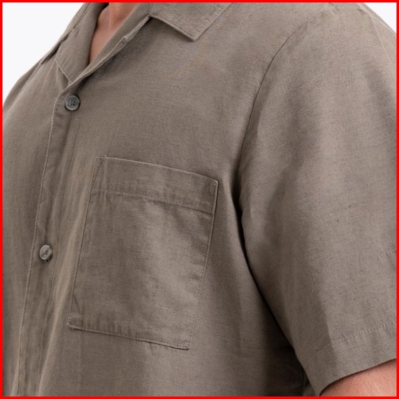 3second Kemeja Lengan Pendek Pria Basic Shirt Cuban Collar Kemeja Santai Polos Baju Atasan Cowok Casual Outfit Men Short