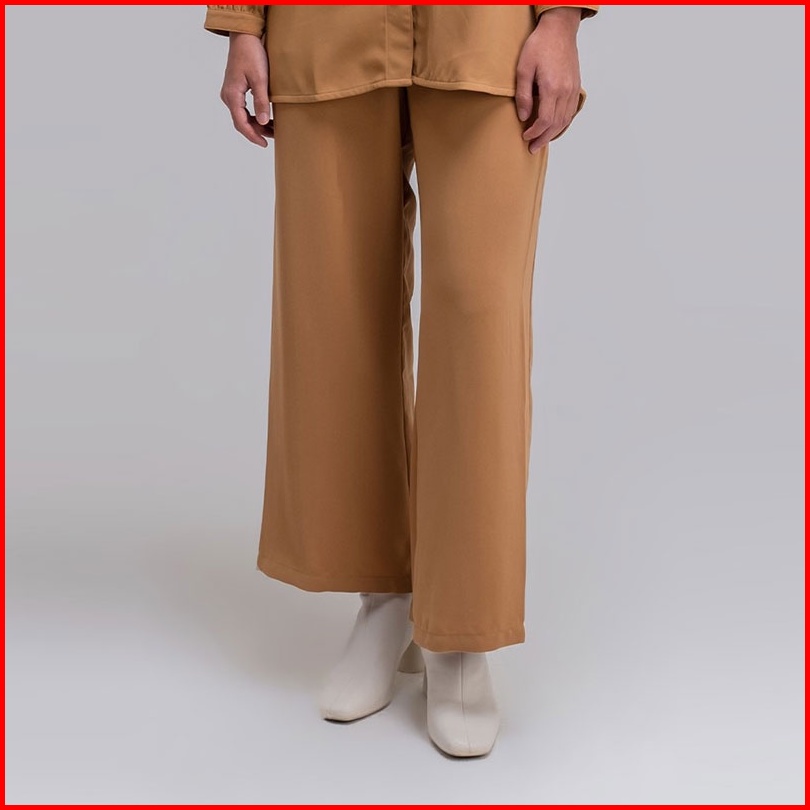 Greenlight Celana Panjang Kulot Wanita Polyester Cullote Trousers Loose Pants Women Basic Kuning 020323