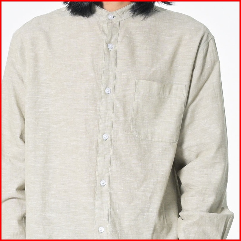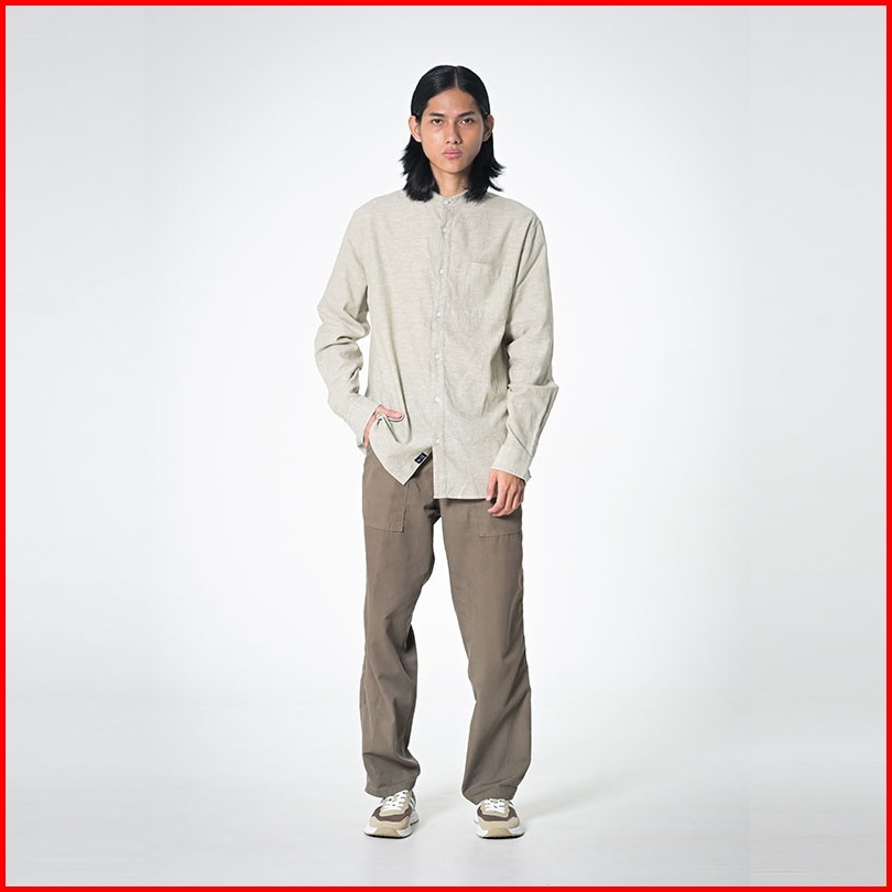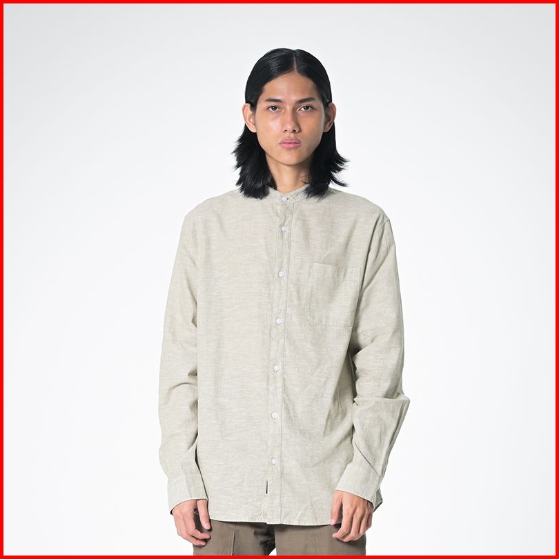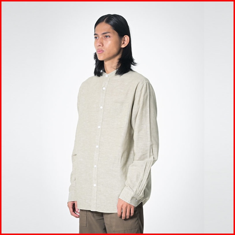 3second Basic Shirt Kemeja Lengan Panjang Pria Linen With Stand-up Collar Men Polos With Pocket Hijau 090523