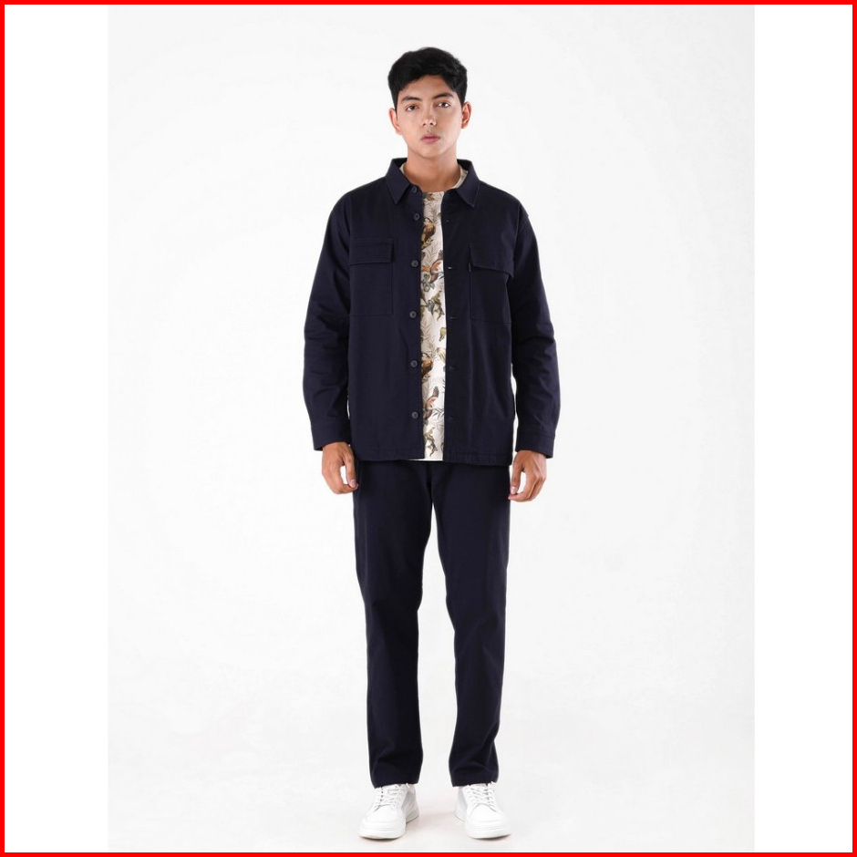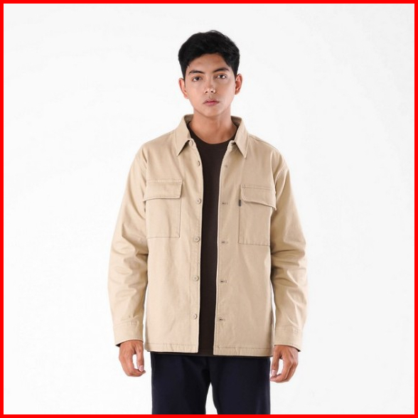 Famo Jaket Kemeja Pria Over Shirt Stretch Cotton With Pocket And Collar C011123
