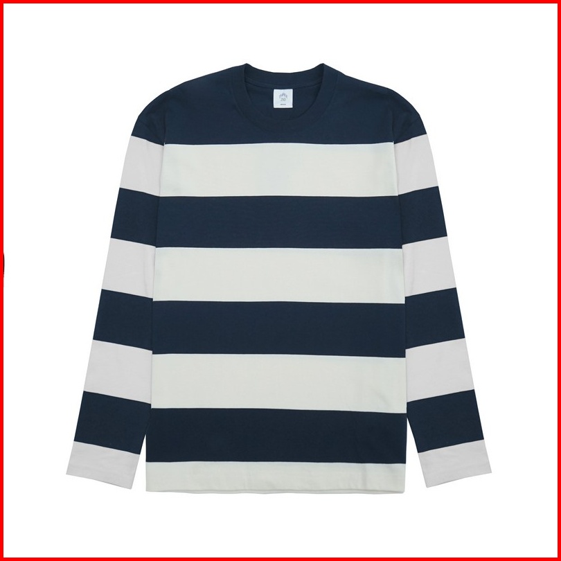 3second Kaos Pria Lengan Panjang Classic Stripe Motif Garis Garis Besar Long Sleeve T-shirt Men Casual C030823