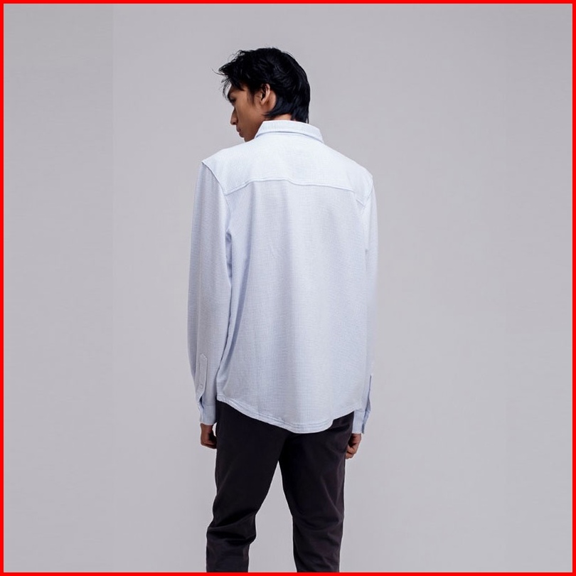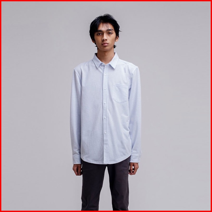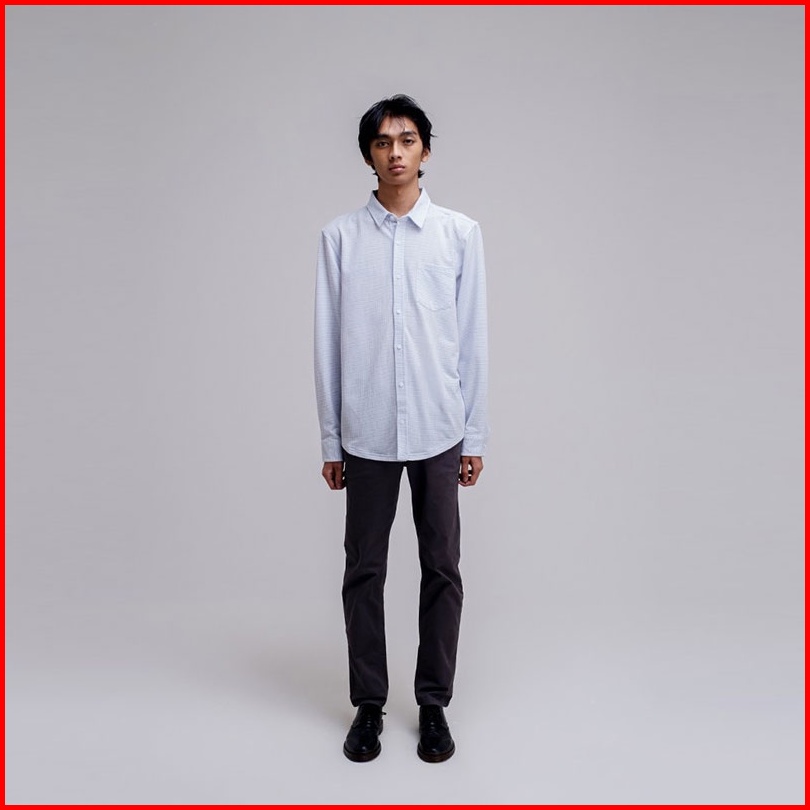 Famo Kemeja Lengan Panjang Linen Short Shirt Stand Up Collar Kerah 180323