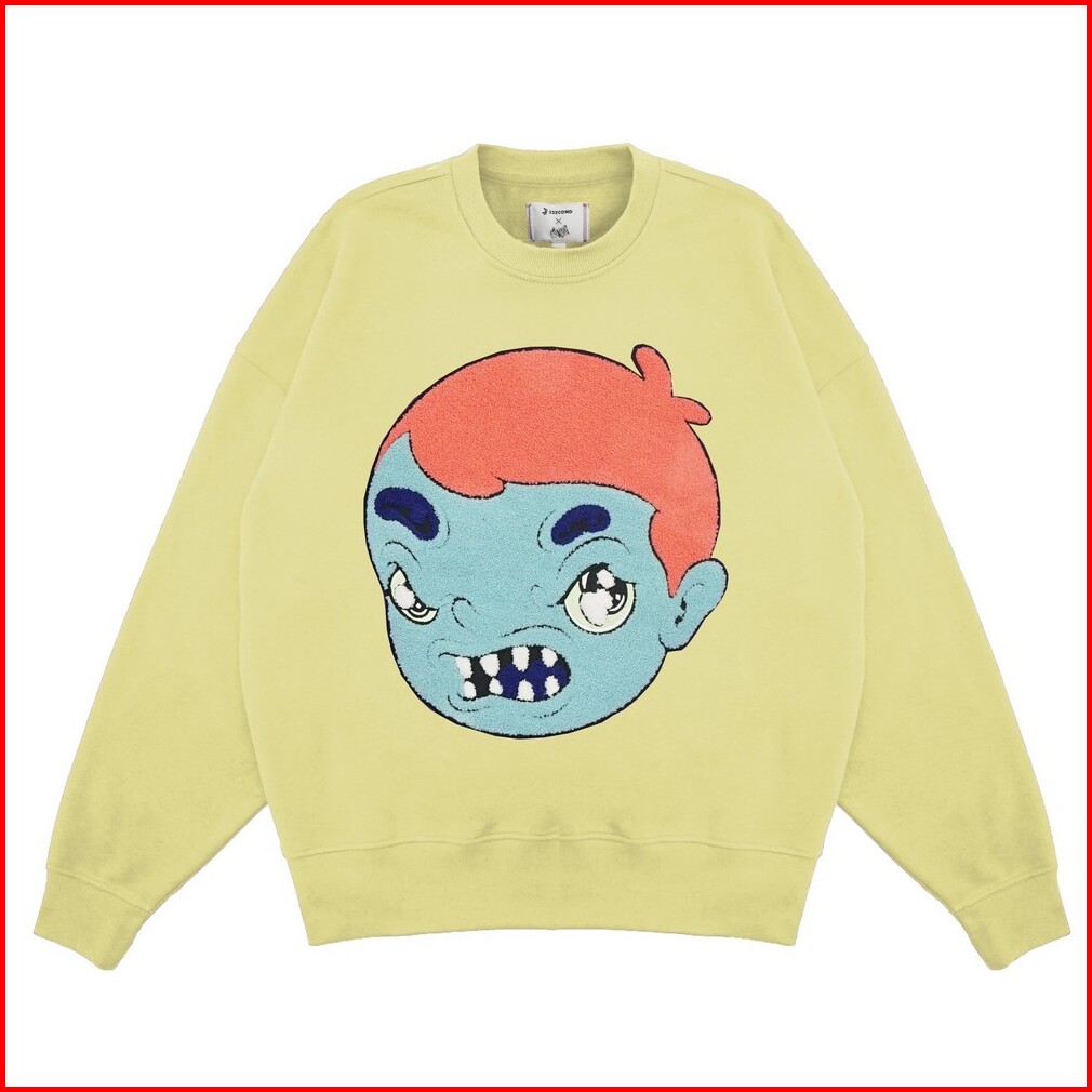 3second X Muklay Crewneck Sweater Oversized Katun Fleece Angry Face C150923