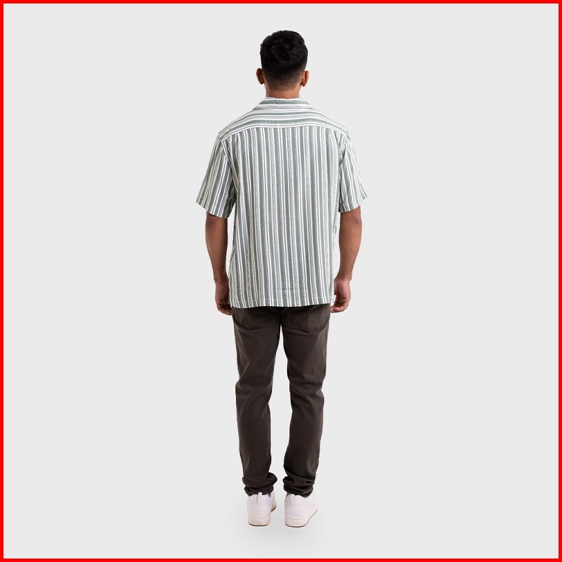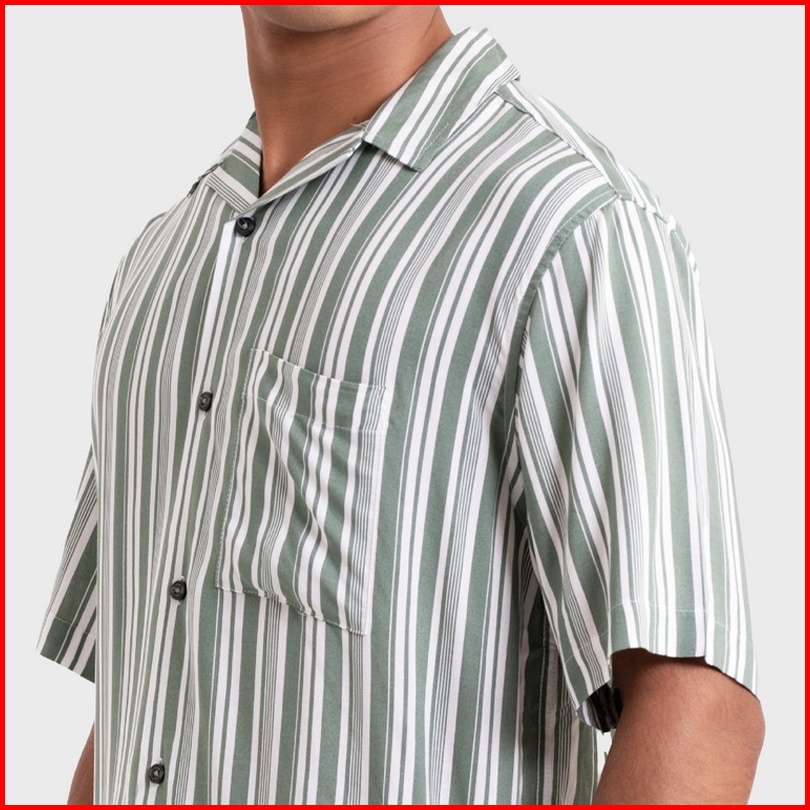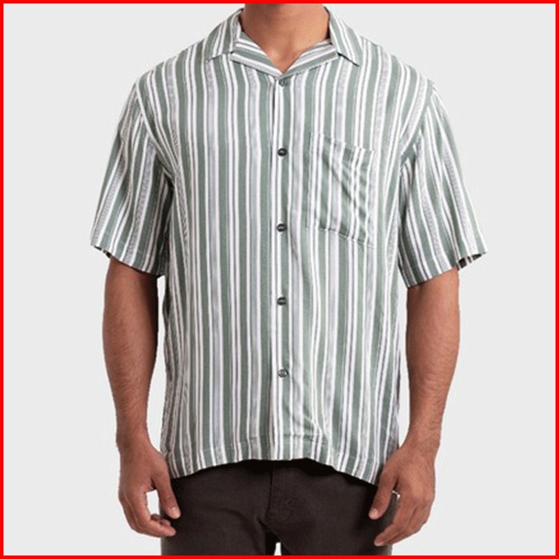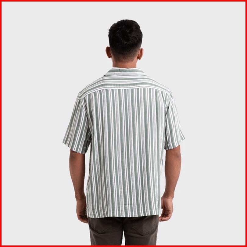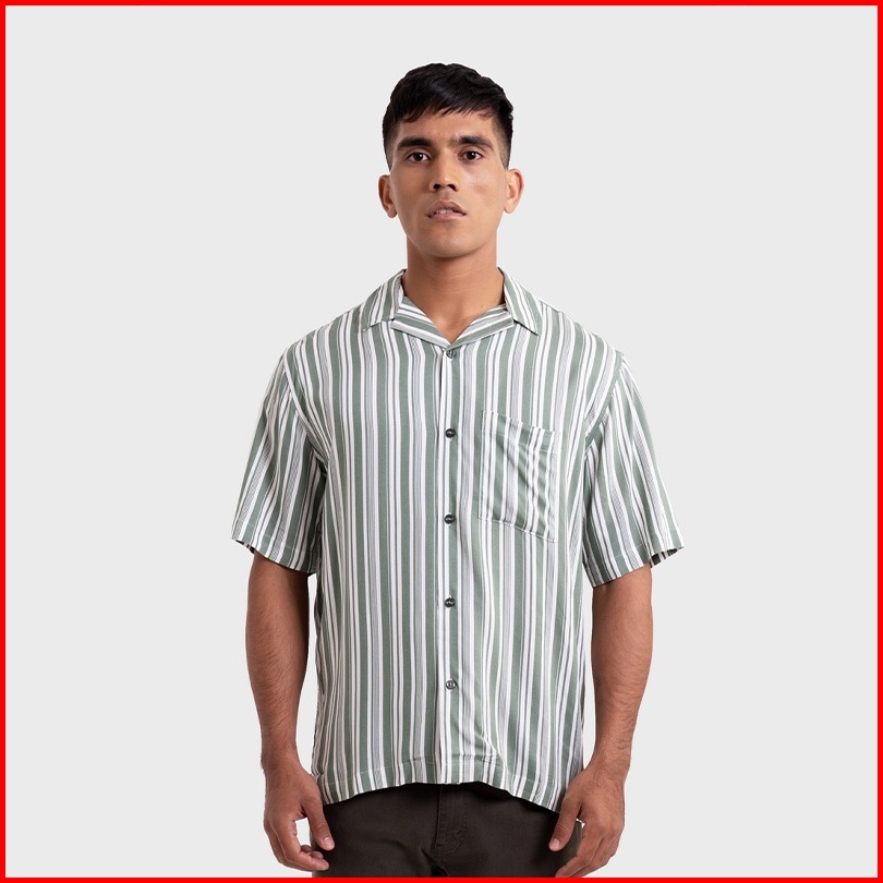Greenlight Kemeja Hawaiian Lengan Pendek Pria Cuban Collar Motif Stripe Baju Atasan Cowok Santai Casual Outfit Men Short