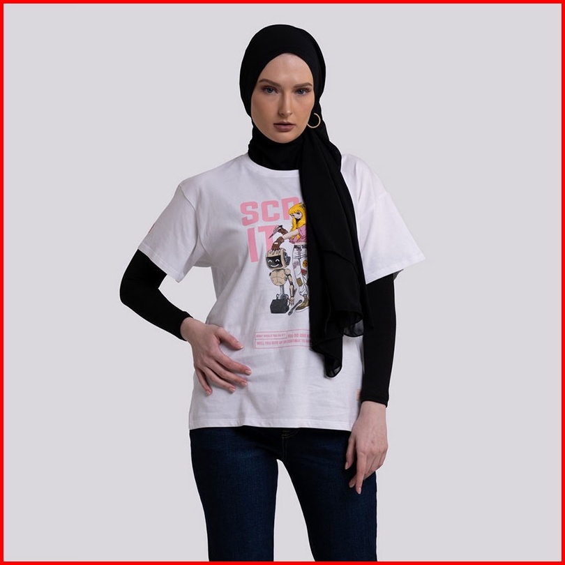 3second Kaos Lengan Pendek Wanita Katun Graphis Print Kerah Bulat Basic Tshirt Casual Cotton Baju Atasan Putih 010123