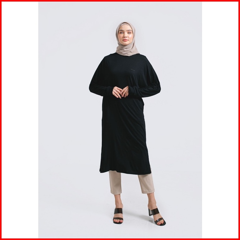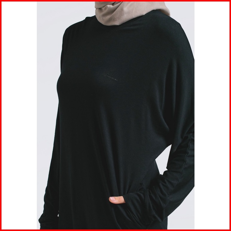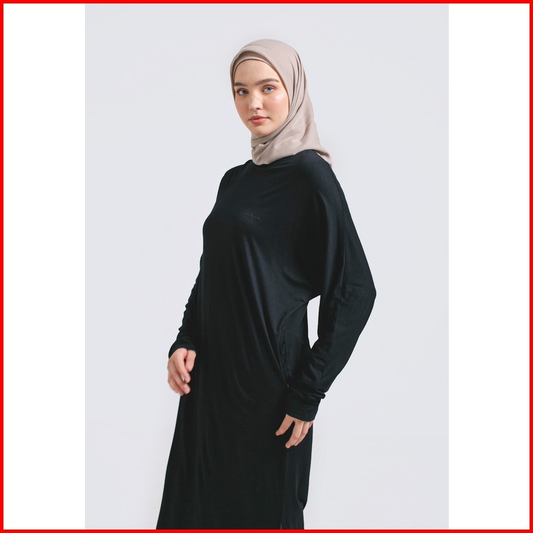 Hanna Kaos Lengan Panjang Midi Dress Pakaian Hijab Rayon Spandex Hitam Terre 011022