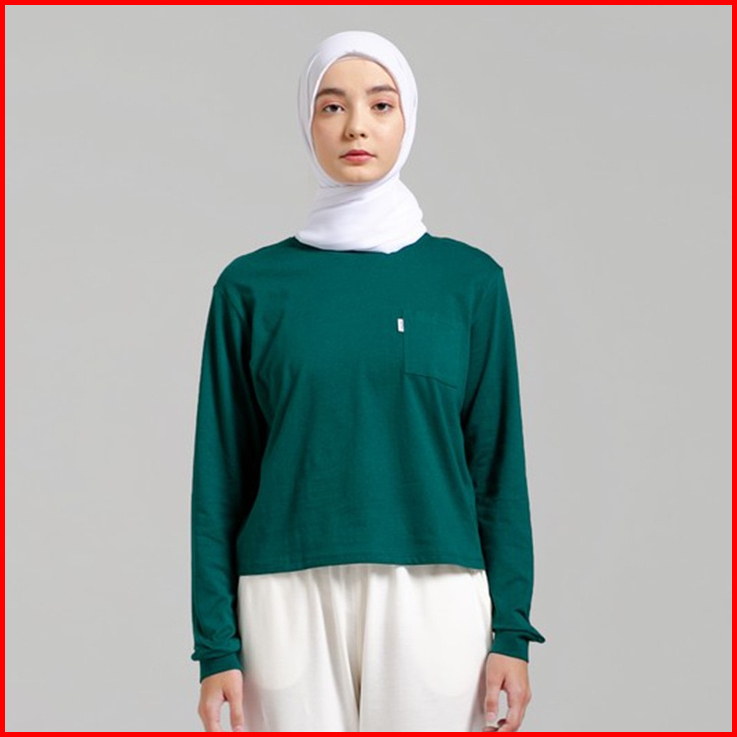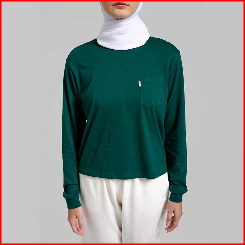 3second Kaos Wanita Polos Lengan Panjang Katun Tshirt Basic Pocket Hijau 170822