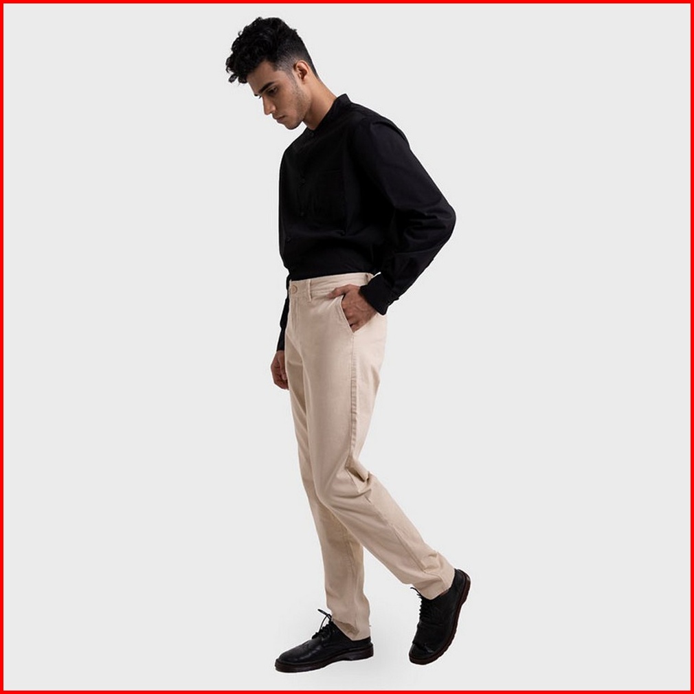 Famo Celana Panjang Chino Pria Katun Spandex Stretch Formal Casual Long Pants Laki Laki Polos With Button Pockets Cream