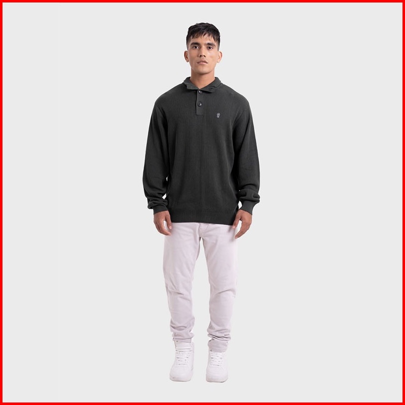 Greenlight Knitwear Pria Rajut With Collar Knit Outer Men Cotton Jacket Outerwear Cowok Baju Atasan Hijau Tua 170123