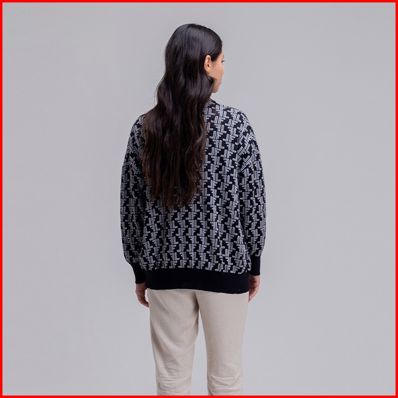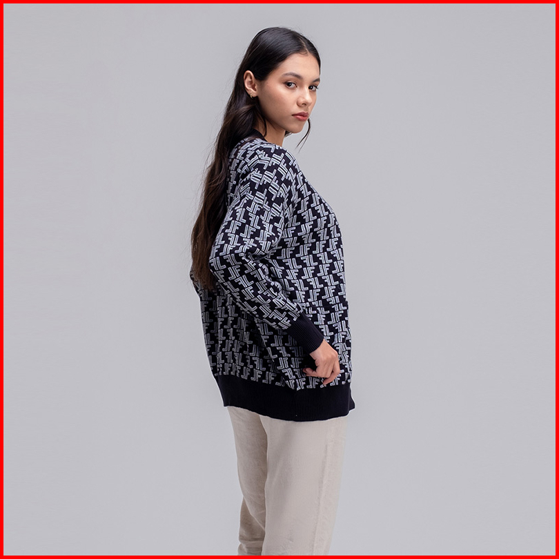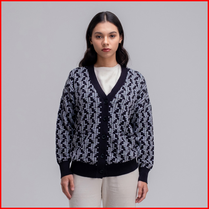Famo Cardigan Rajut Wanita Knit Katun Button Long Sleeve Full Motif Hitam 010423