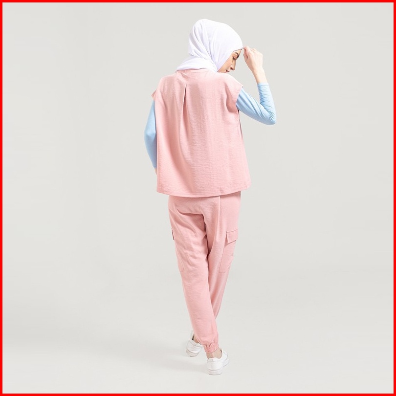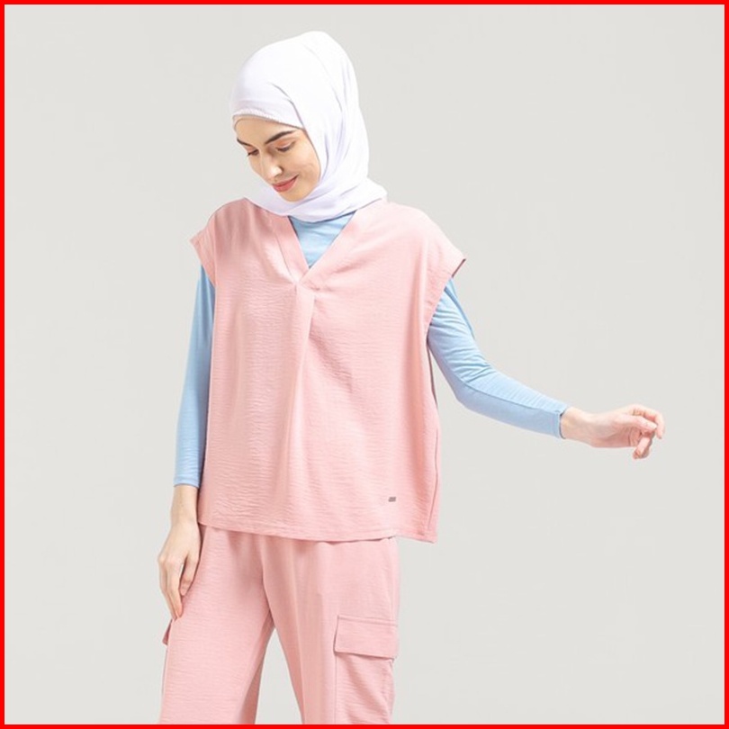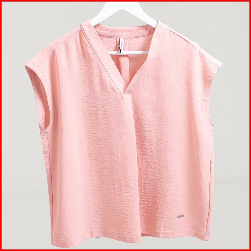 Greenlight Kemeja Rompi Kerah V-neck Original Tanpa Lengan Poly Crinkle Shirt Basic Wanita Pink Mellow Rose 100422