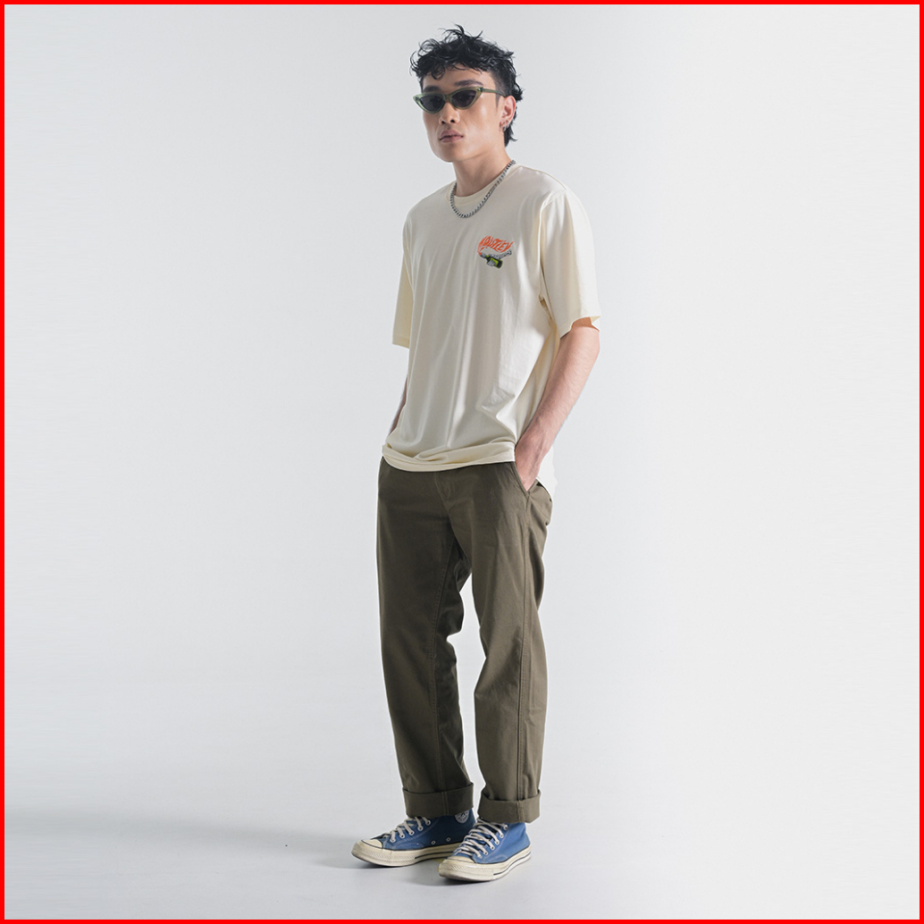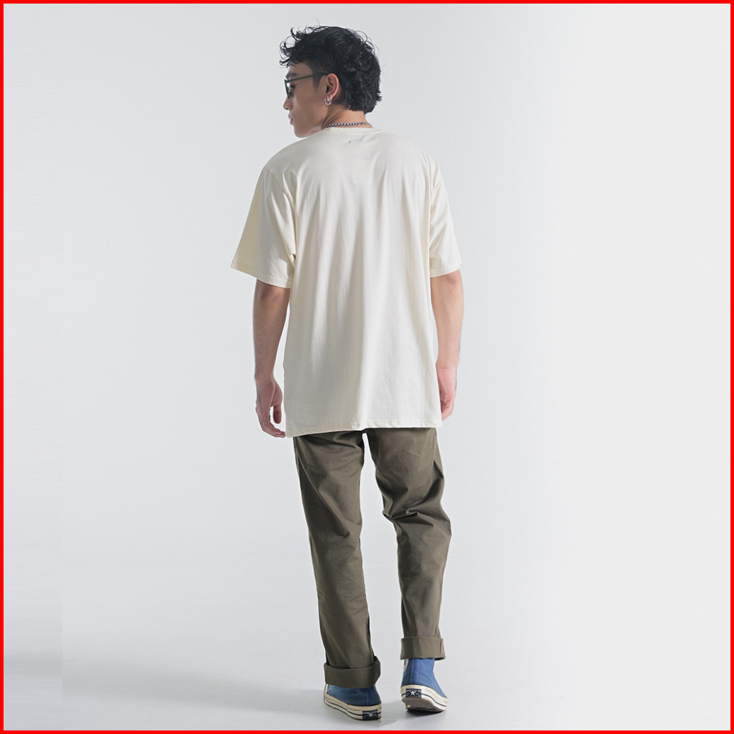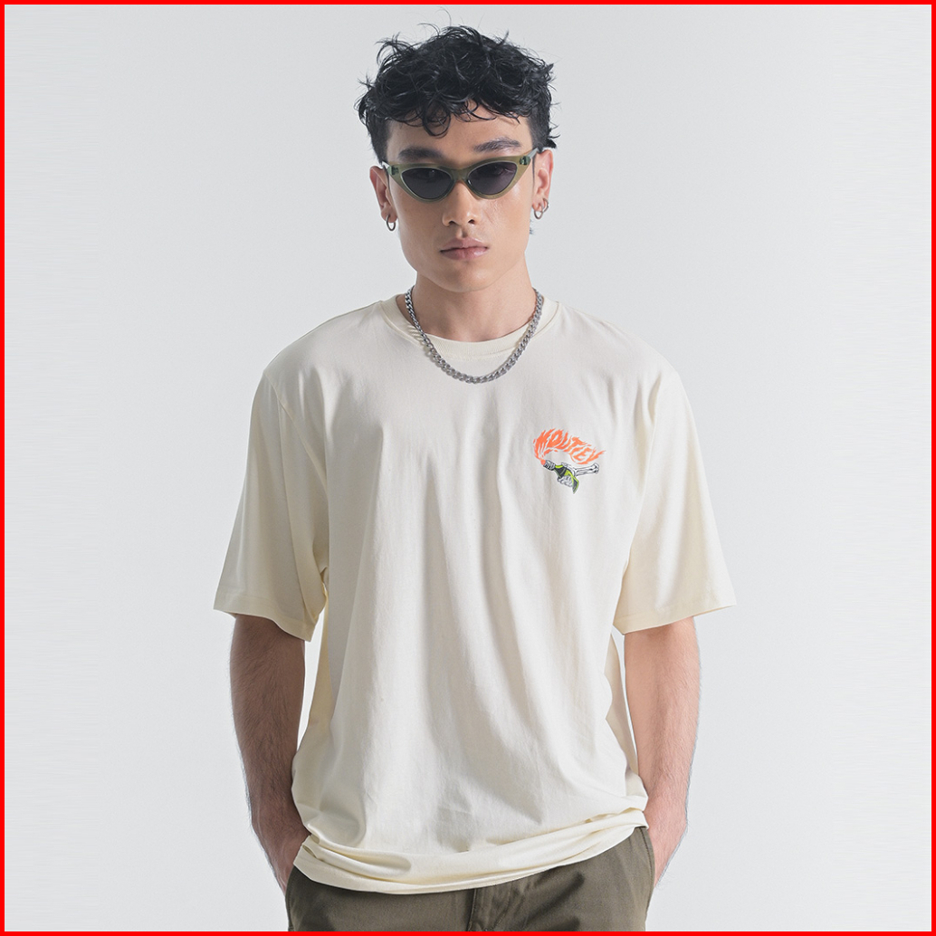Moutley Kaos Lengan Pendek Pria Motif Minimalis Katun Basic T Shirt Casual Simple Cotton Men Tee Baju Atasan Cowok Cream