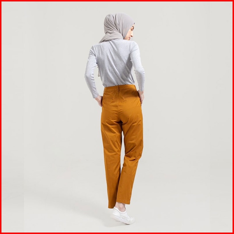 3second Original Celana Basic Panjang Cotton Katun Spandex Long Pants Wanita Coklat Catchay Spice 120422