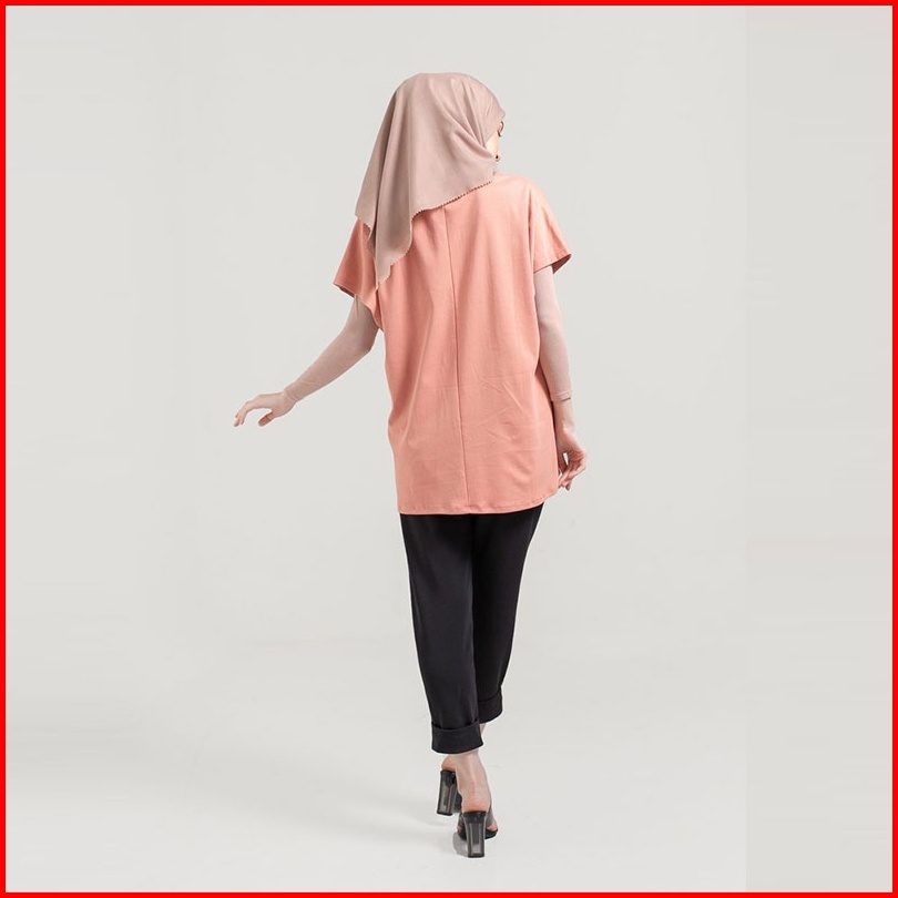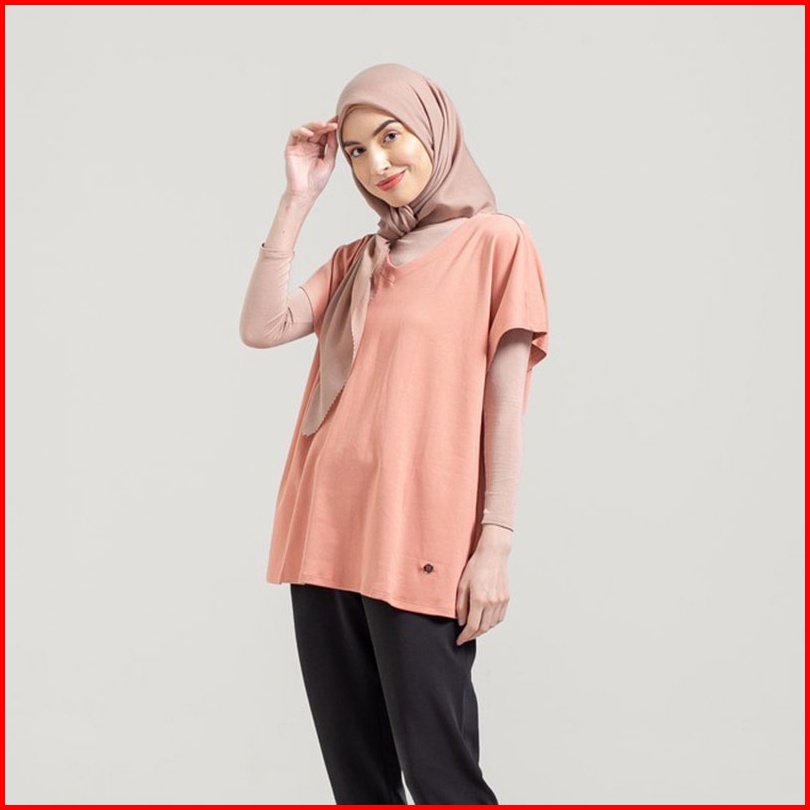 Famo Kaos Wanita Polos Kerah V-neck Lengan Pendek Katun Tshirt Basic Relax Fit Pink Rose Dawn 030422
