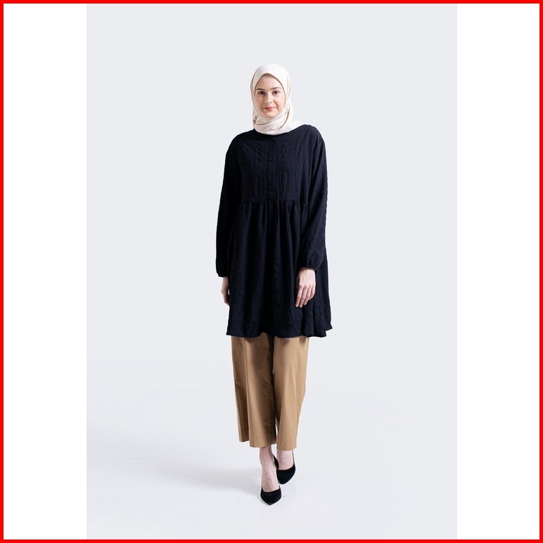 Hanna Tunik Natalia Midi Dress Pakaian Hijab Atasan Wanita Katun Hitam 091022