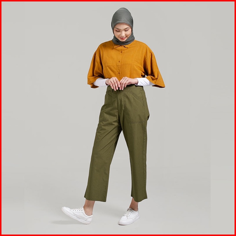 Greenlight Original Celana Basic Panjang 100 Cotton Katun Long Pants Wanita Hijau Beech 010822