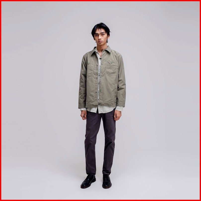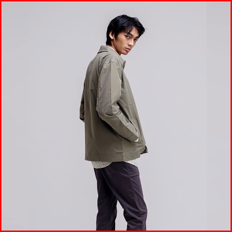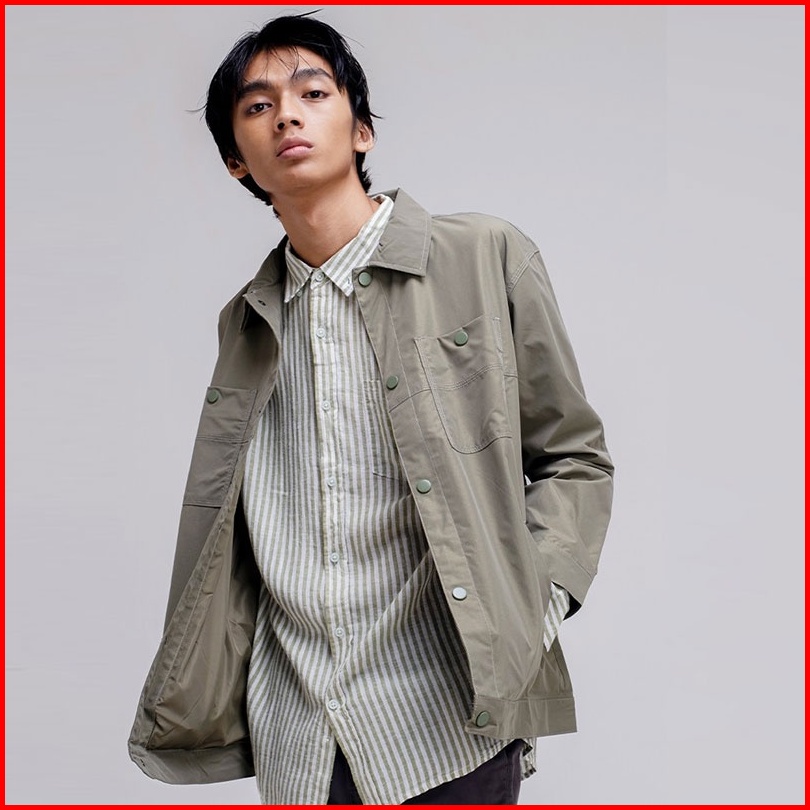 Famo Jaket Kancing Pria Truckerjacket Polyester Outerwear With Collar Button 070323