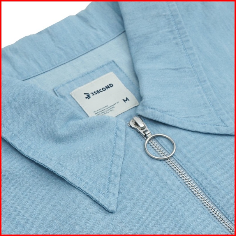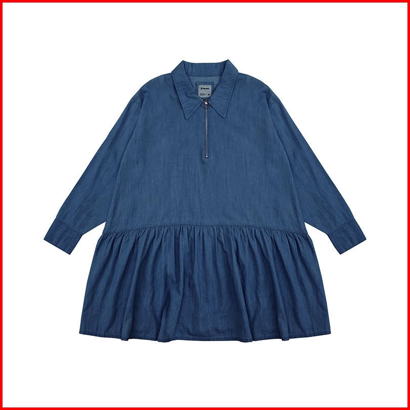 3second Kemeja Jeans Wanita Shirt Sumire Dress Denim Loose Fit Half Zip C210423