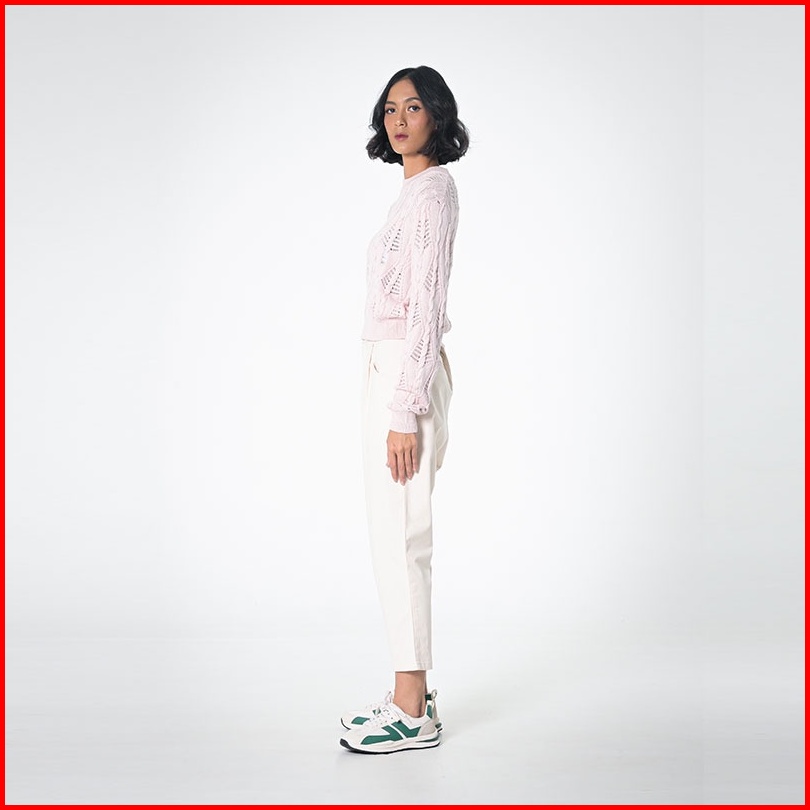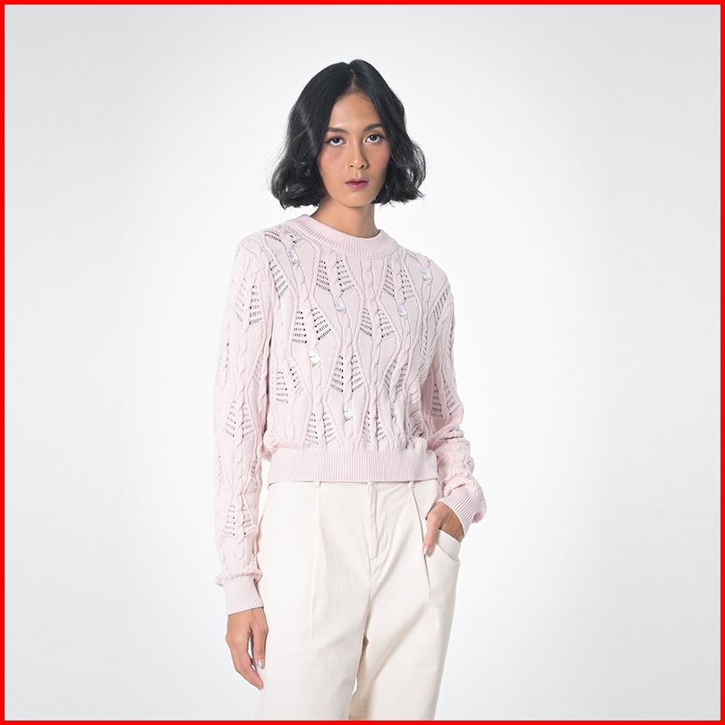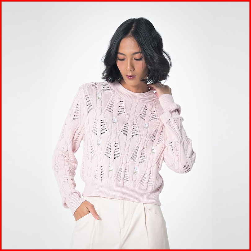 3second Cropped Sweater Rajut Wanita Motif Katun Women S Knitwear Long Sleeve Lengan Panjang Casual Winter Outfit Pink 0