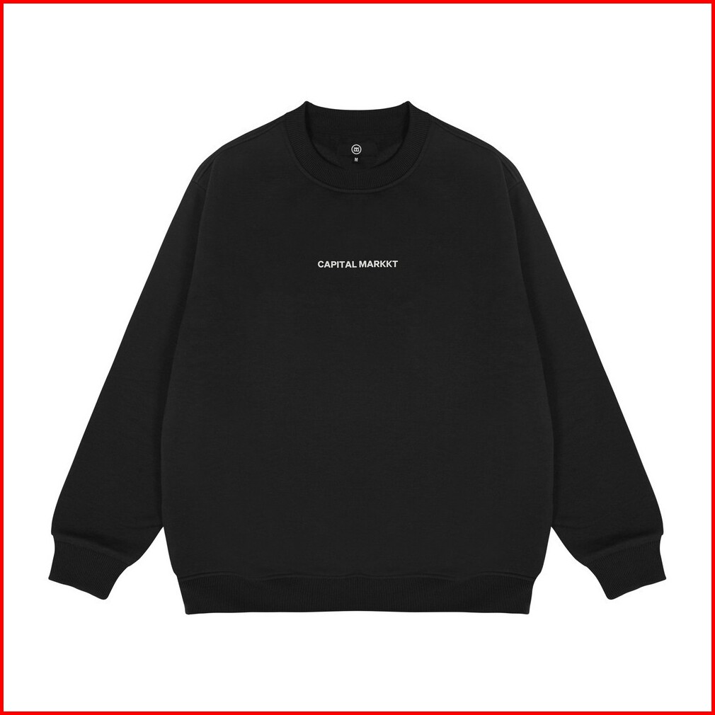 Capmart Jaket Pria Basic Crewneck Sweatshirt Katun Fleece Logo Script 050125