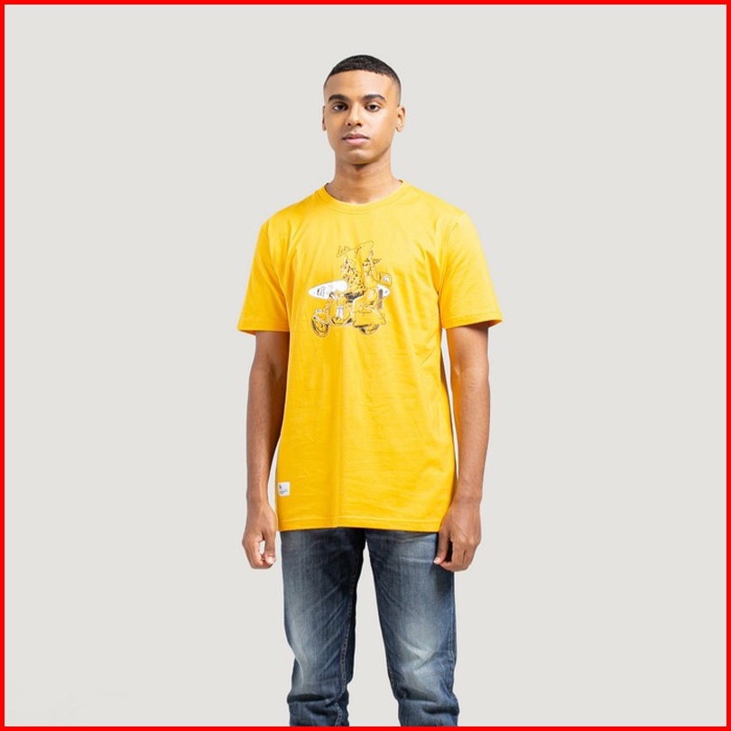 Fmc Kaos Pria Katun Print Vespa Bikers Lengan Pendek Katun Tshirt Motor Graphic Tee Pria Kuning 110622