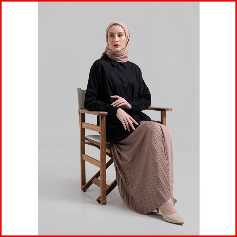 Hanna Kemeja Polos Harley Atasan Hijab Shirt Basic 100 Cotton Katun Soft Linen Hitam 041022