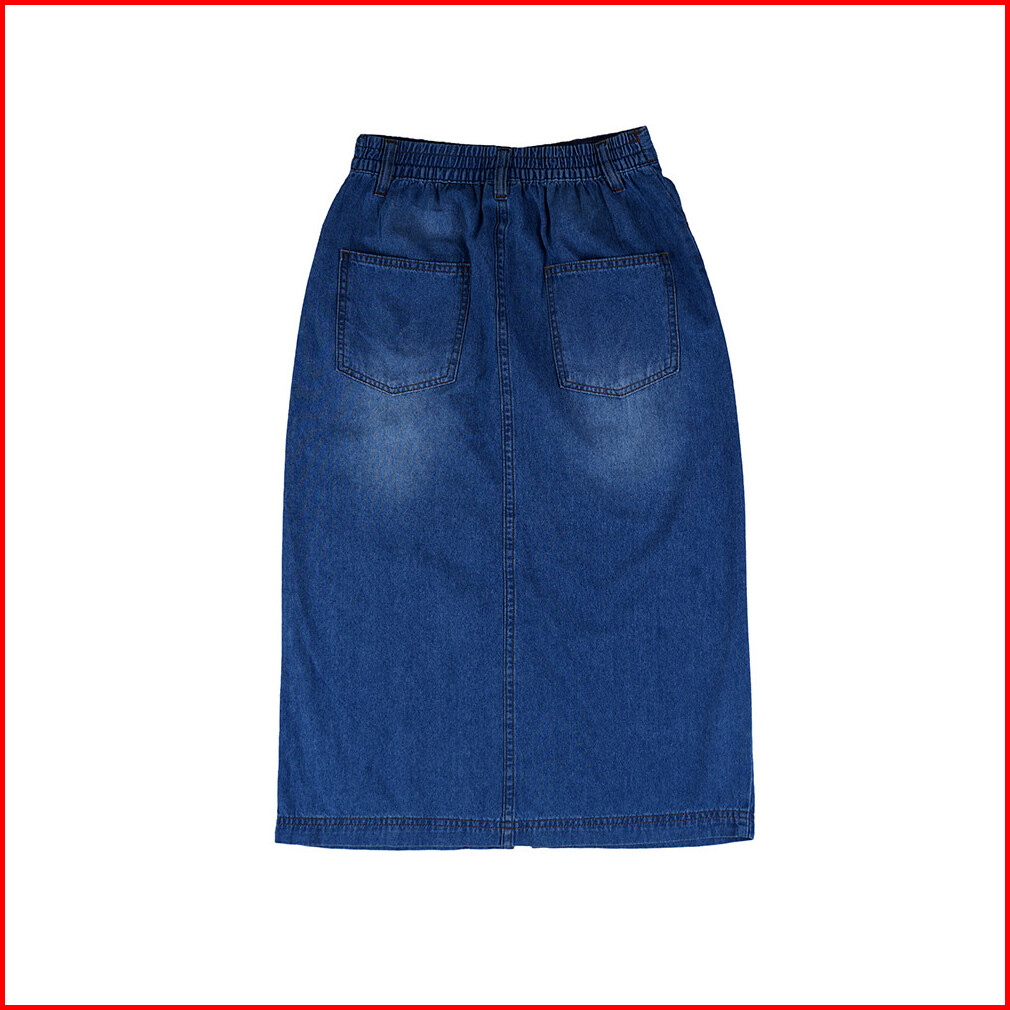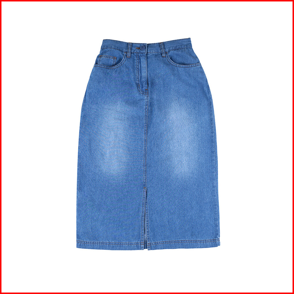 3second Rok Midi Wanita Denim Wash Skirt Front Slit Cecilia Hp-c011124