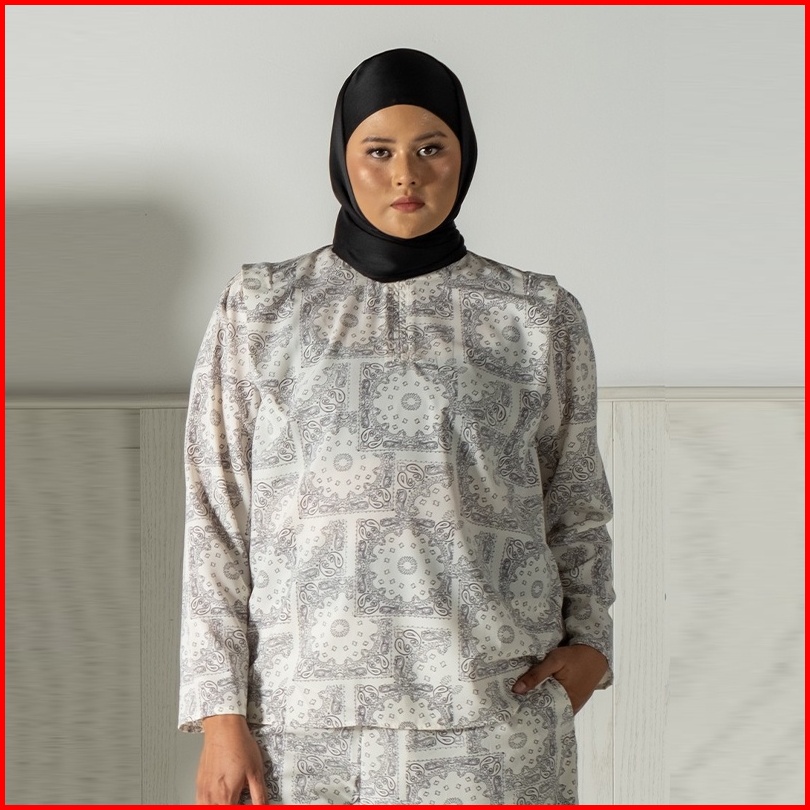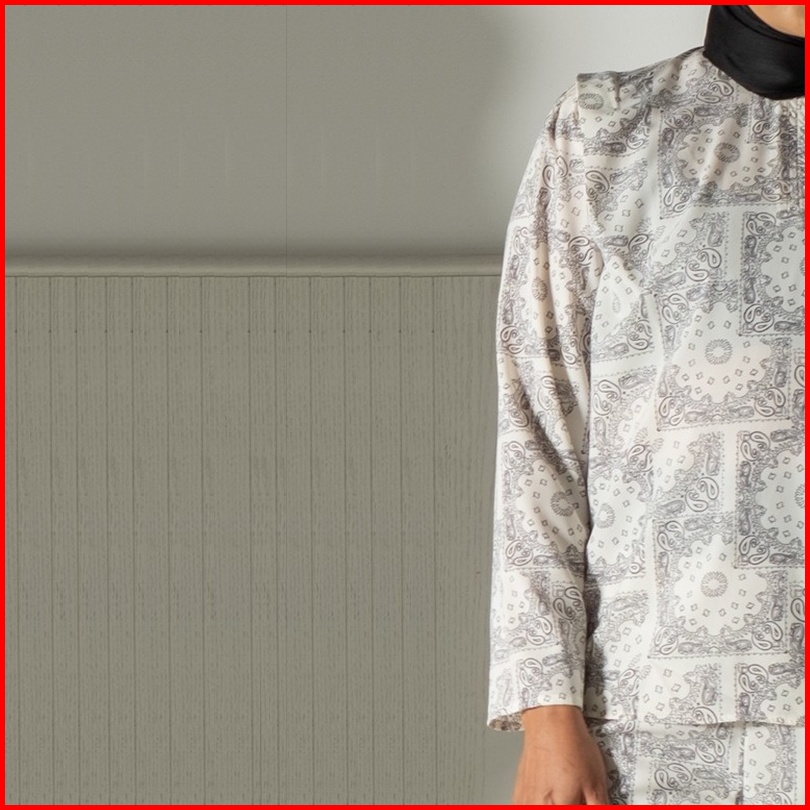 Hanna Aaliyah Blouse Wanita Full Motif Baju Atasan Formal Wanita Warna Cream 010323