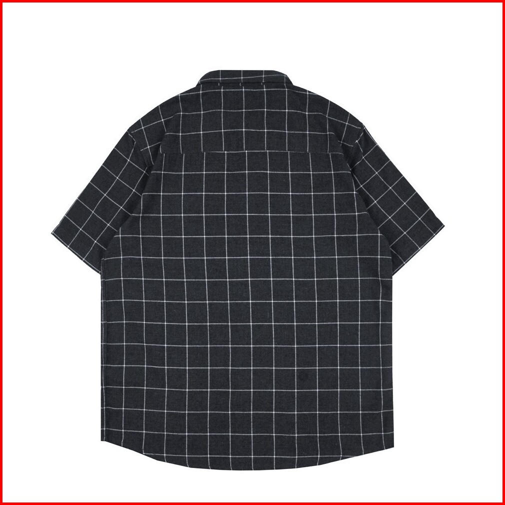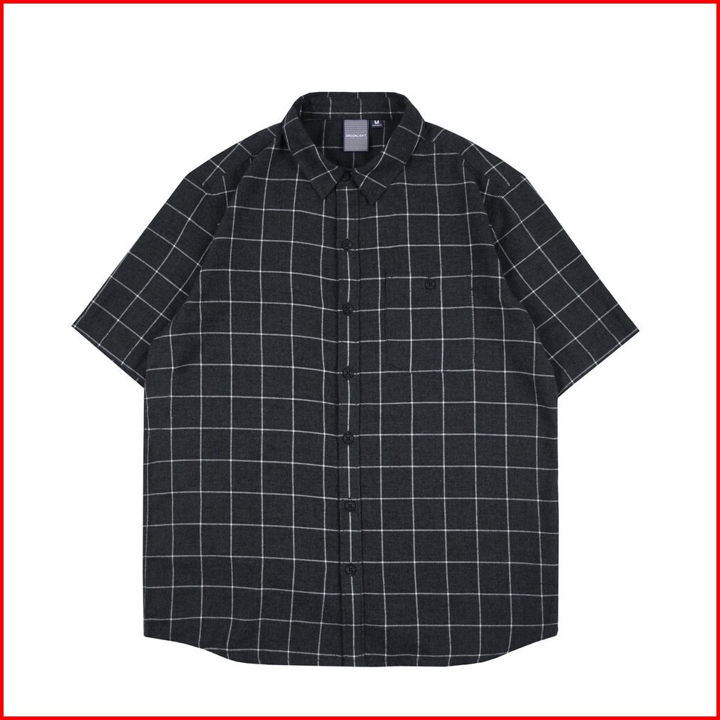 Greenlight Kemeja Pria Kotak-kotak Lengan Pendek Abu C030424