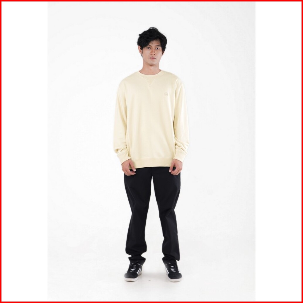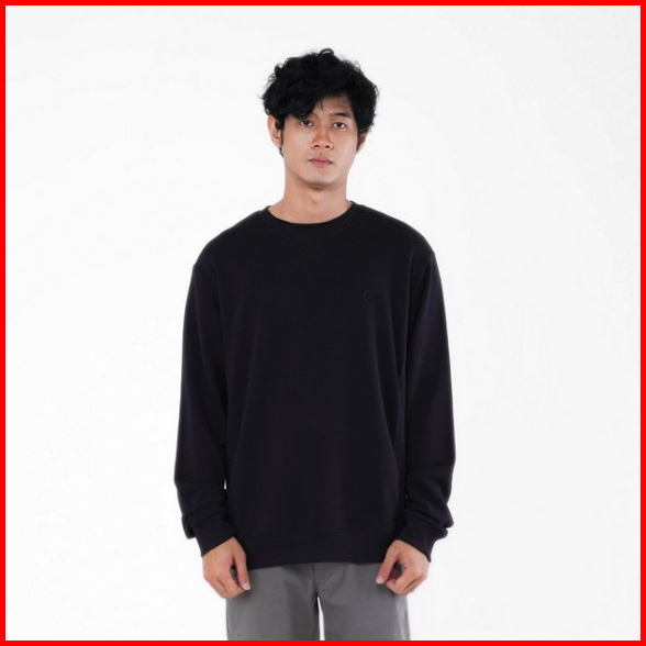 Famo Macario Crewneck Sweater Pria Frenchterry Polos Logo Bordir C010124