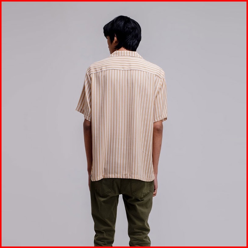 Greenlight Kemeja Pria Garis Garis Cuban Collar Stripe Bowling Shirt Baju Casual Strip 190423