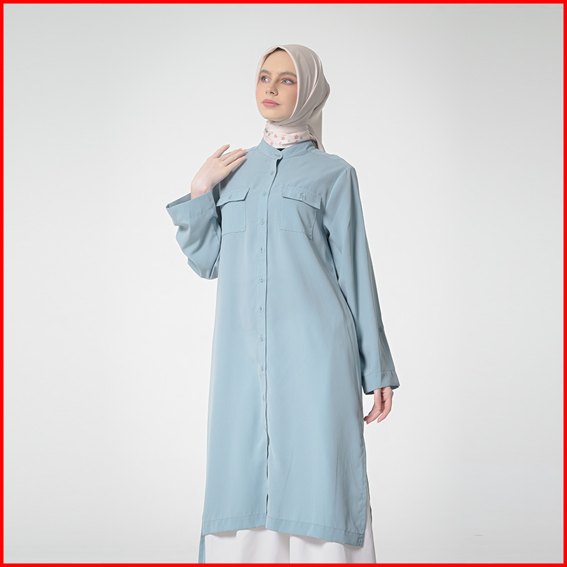 Hanna Midi Dress Annelise Full Button Lengan Panjang Casual Formal Long Fit Hijau C020423