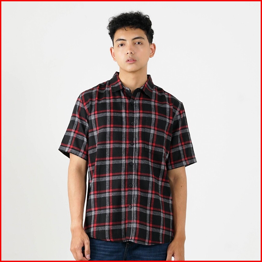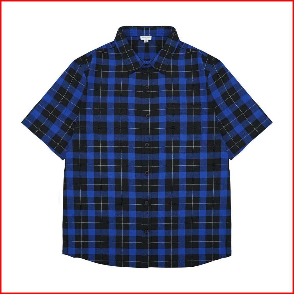 Greenlight Kemeja Kotak-kotak Pria Flanel Plaid Lengan Pendek Regular Fit Creo Ol-c040225
