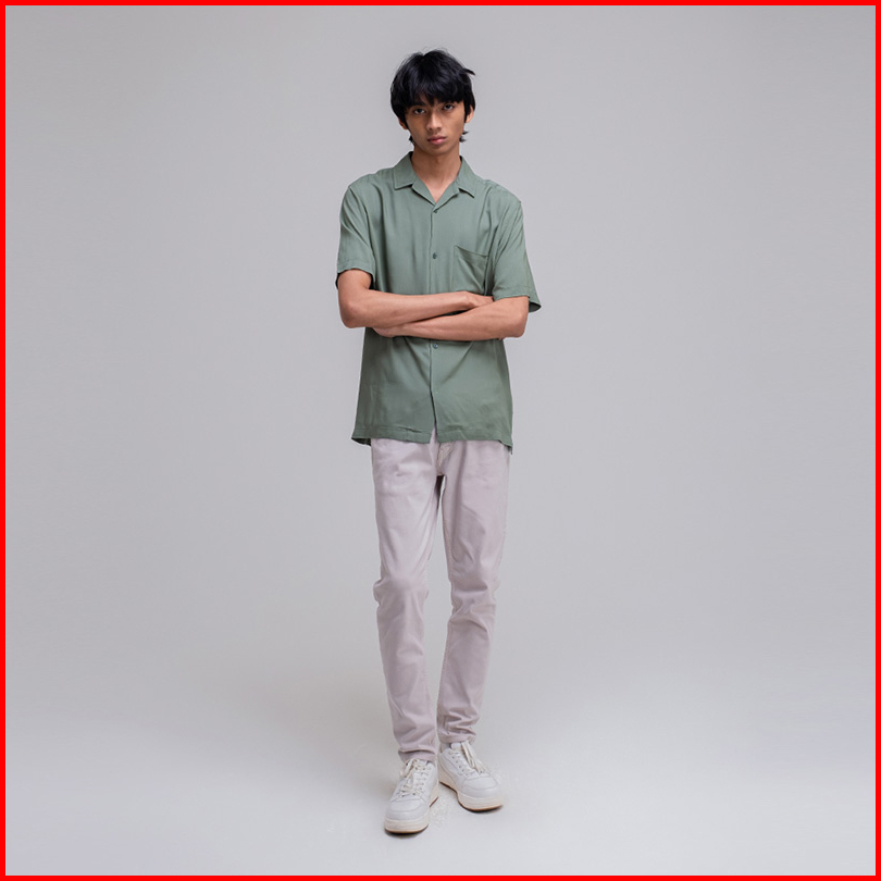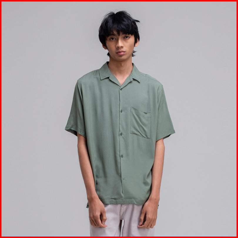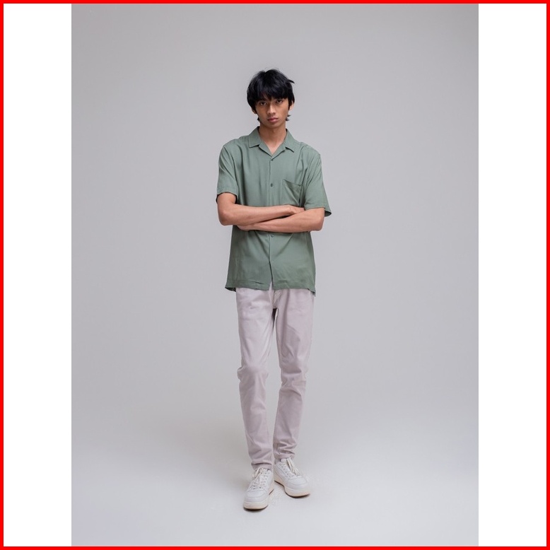 Greenlight Kemeja Cuban Collar Hawaiian Basic Shirt Baju Casual Hijau 210323