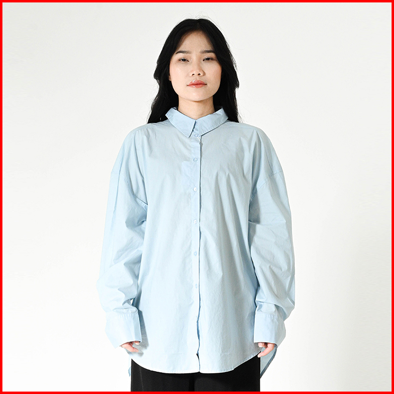 3second Kemeja Lengan Panjang Wanita Blouse Basic Polos Katun Baju Atasan C150423
