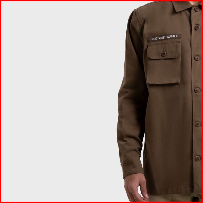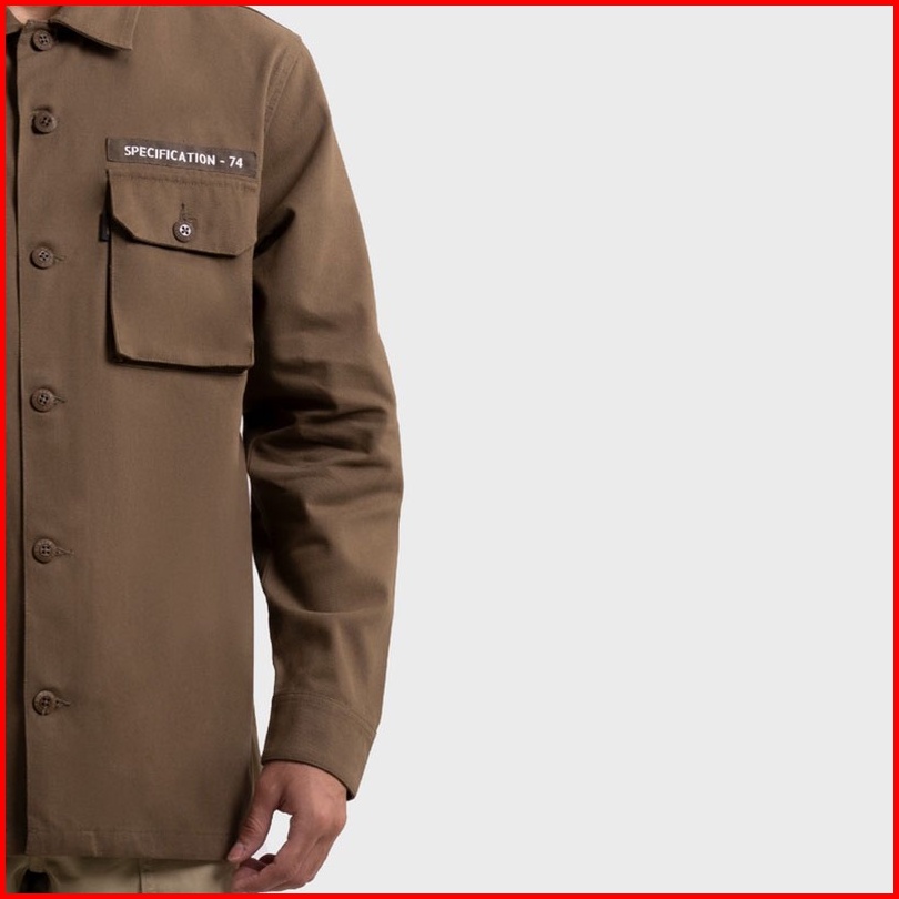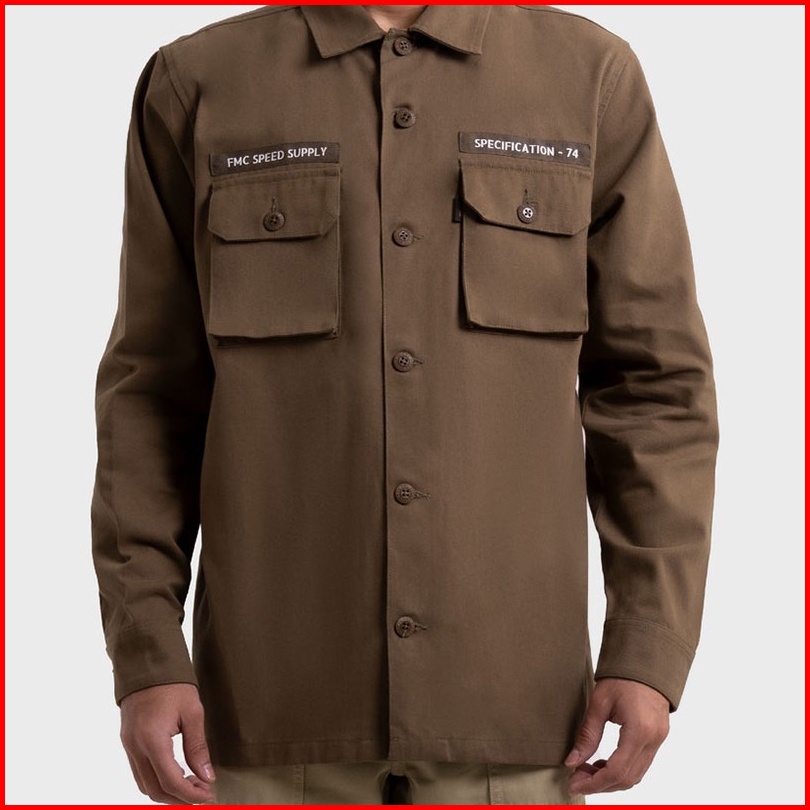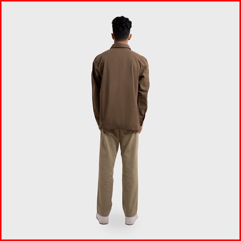 Fmc Jaket Kemeja Berkerah Semi Parka Dengan Saku Pria Polos Katun Atasan Outer Jacket Cotton Cowok Basic Coklat 100223