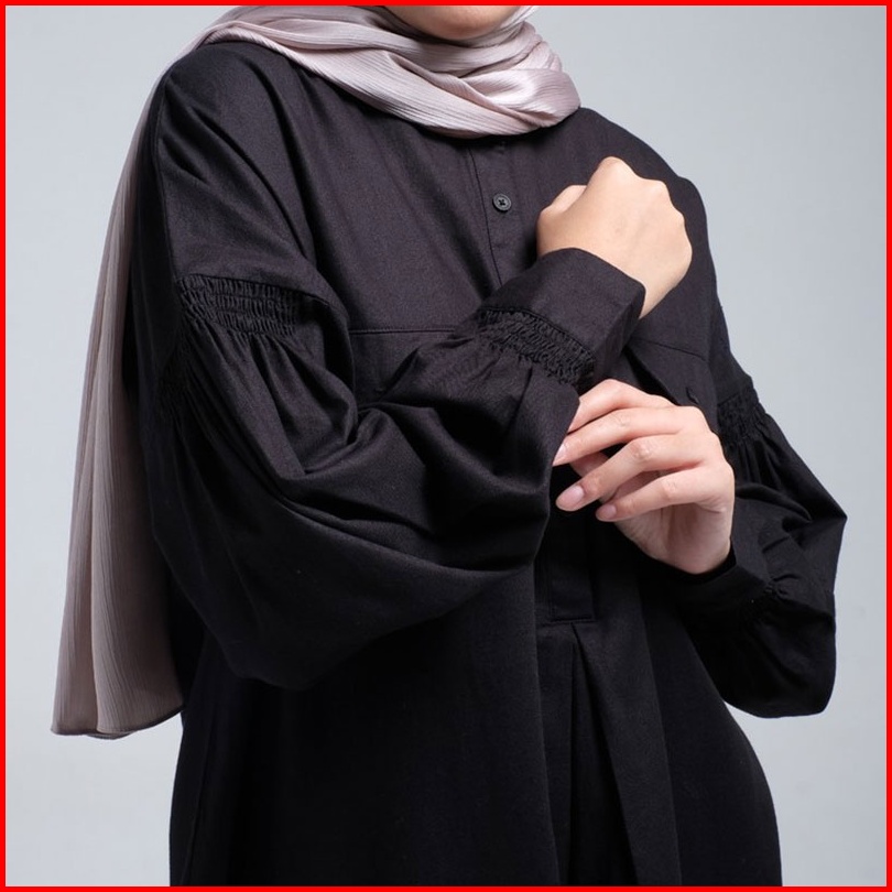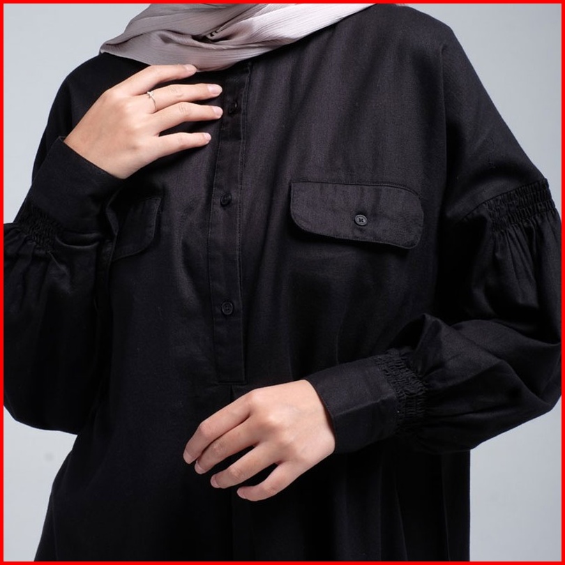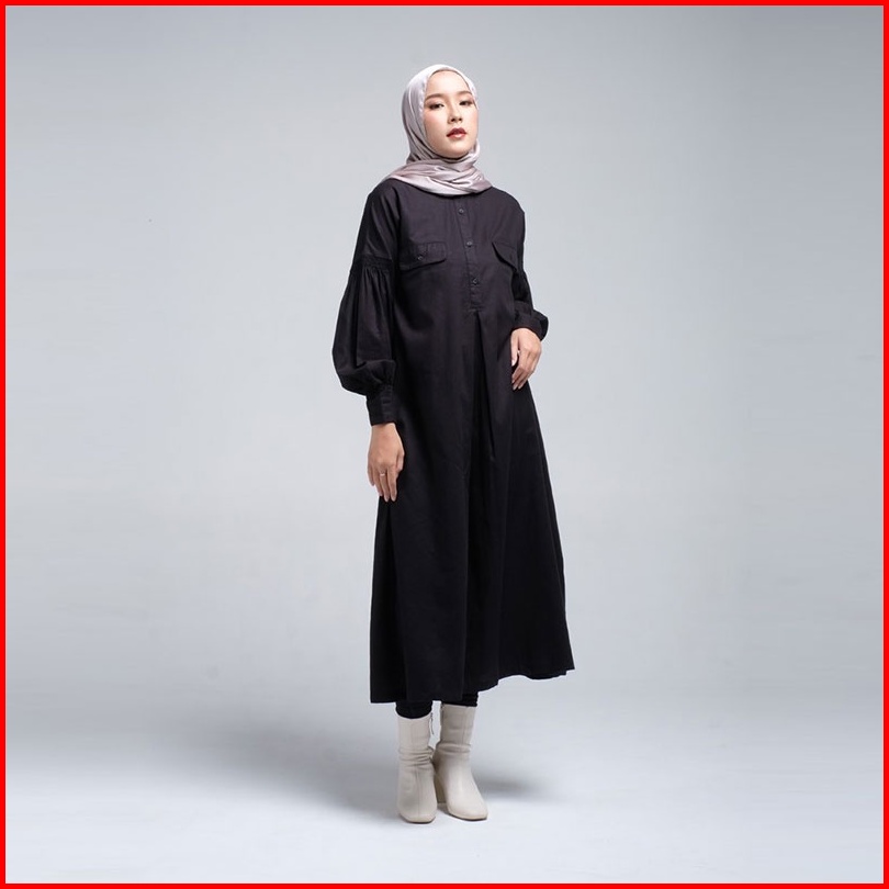 Hanna Midi Shirt Dress Verene Lengan Balon Baju Terusan Kemeja Dengan Saku Babydoll 010523