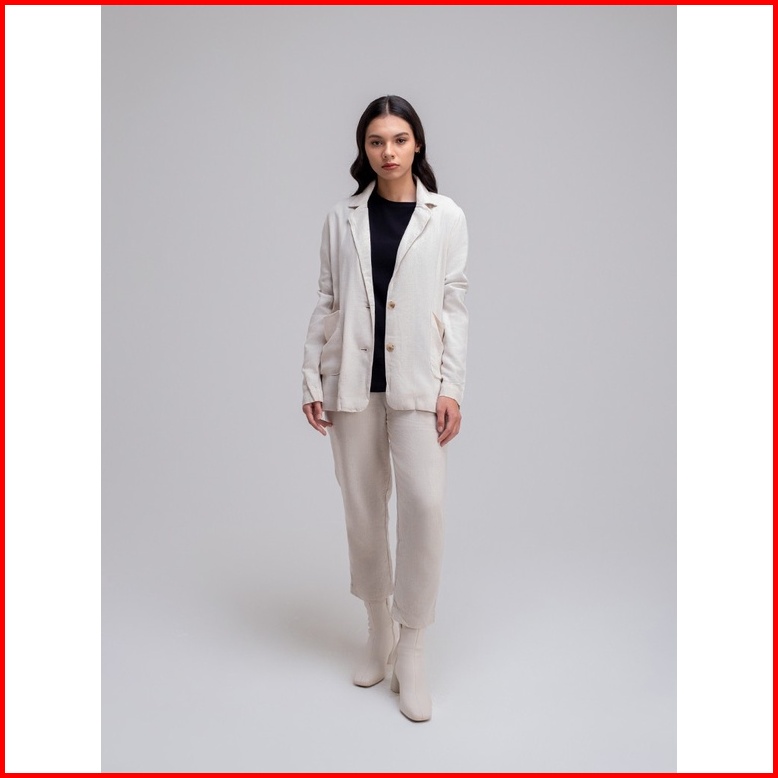 Famo Blazer Linen Rayon With Pockets Formal Outfit Outer Wanita Cream 010323