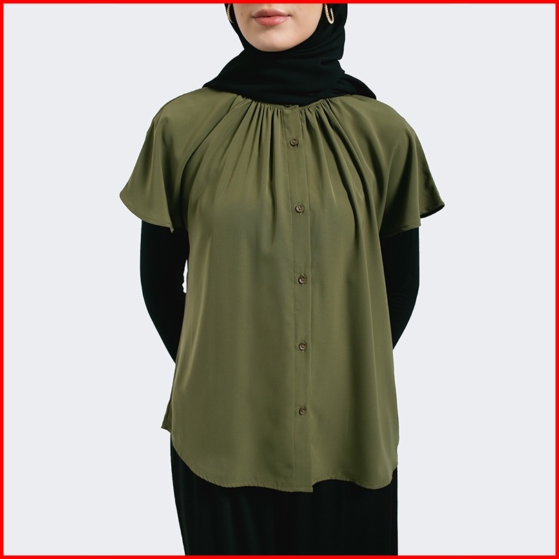 Greenlight Kemeja Casual Kerah Bulat Original Lenganpendek Poly Shirt Basic Wanita Hijau Capers 041122