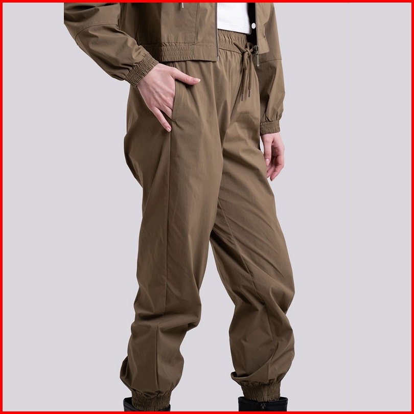Greenlight Celana Jogger Wanita Panjang Women S Jogger Pants Sportswear Outfit Nylon Crinkle Green 010223