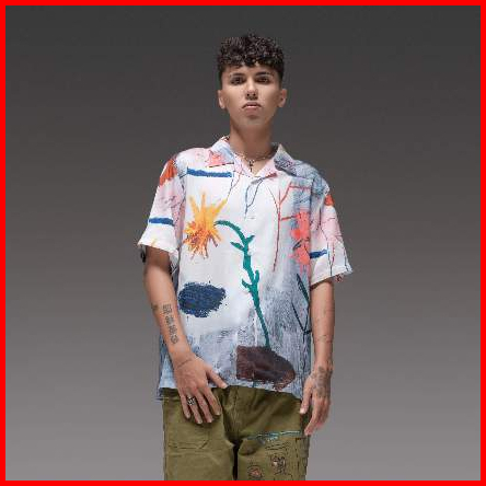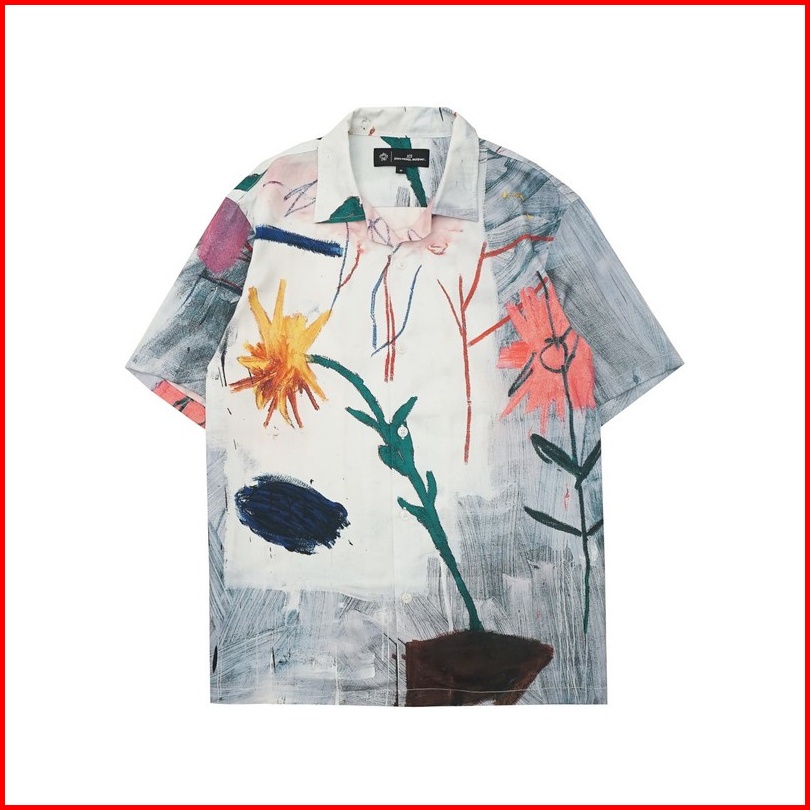 3second X Basquiat Kemeja Pria Lengan Pendek Short Shirt Full Print Flower 020823