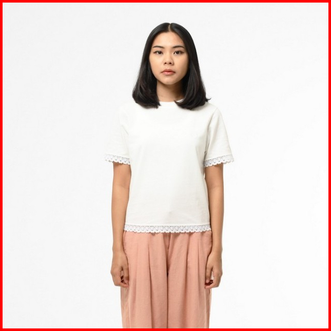 Greenlight Kaos Wanita Lengan Pendek Regular Fit Katun Renda Nioko C050225