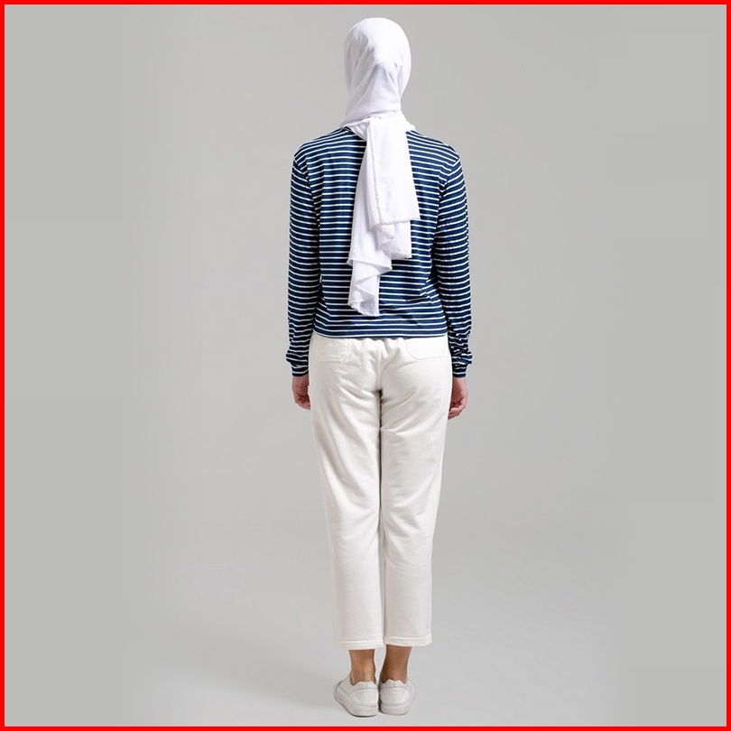 3second Original Kaos Wanita Salur Lengan Panjang Poly Rayon Tshirt Stripe Biru Poseidon 100822