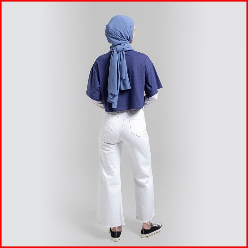 Greenlight Original Kaos Wanita Polos Midle Crop Lengan Pendek 30s Katun Tshirt Basic Biru 020822
