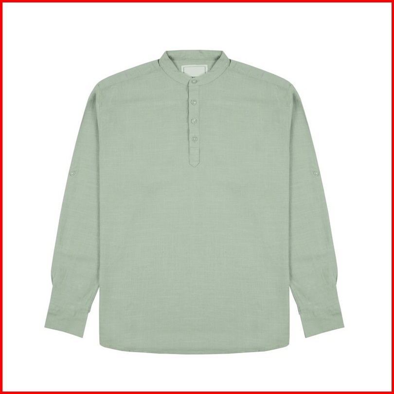 Greenlight Kemeja Lengan Panjang Pria Band Collar Kerah Bulat Koko Basic Polos Formal C200423