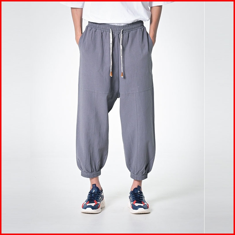 3second Celana Panjang Harem Jogger Pria Summer Loose Trousers Pants Abu-abu 020423