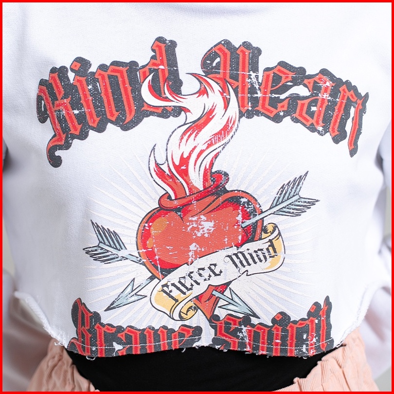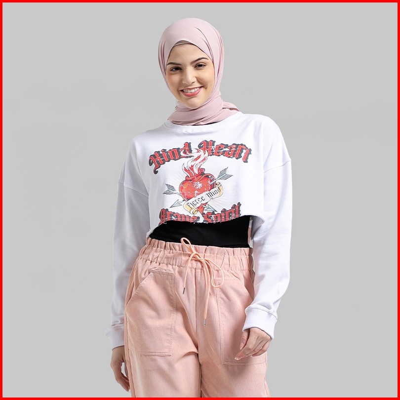 Greenlight Sweater Crop Wanita Graphic Putih 010922
