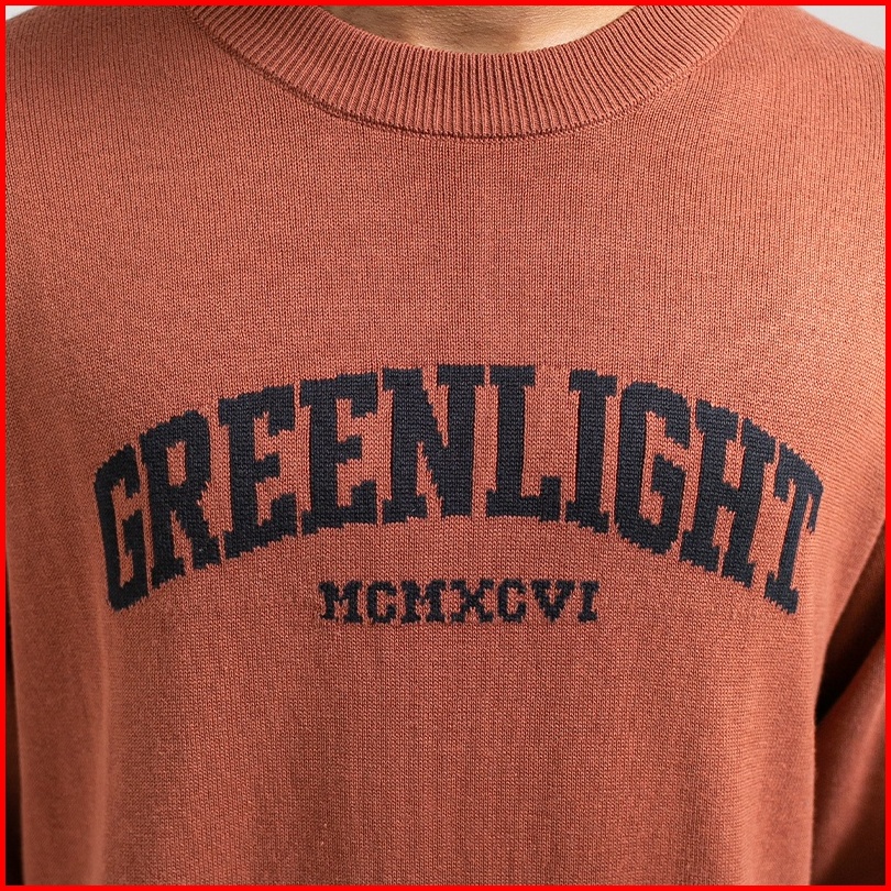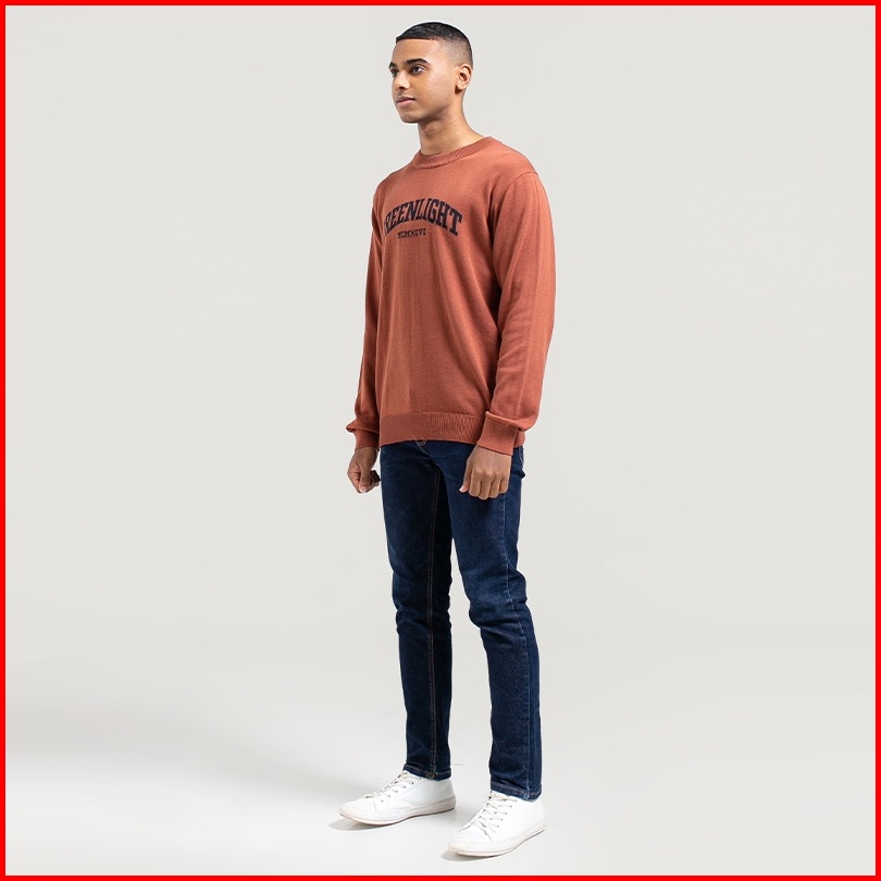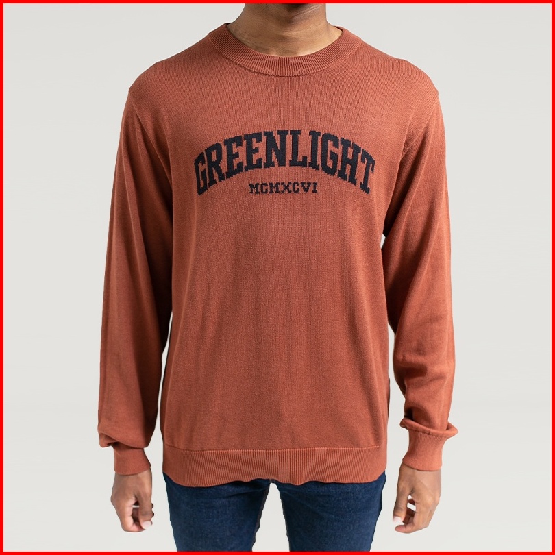 Greenlight Sweater Rajut Katun Outer Round Neck Graphic Pria Coklat 050622