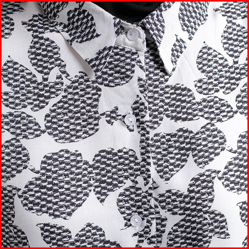 Famo Kemeja Casual Motif Original Lenganpanjang Poly Shirt Full Print Wanita Putih 051022